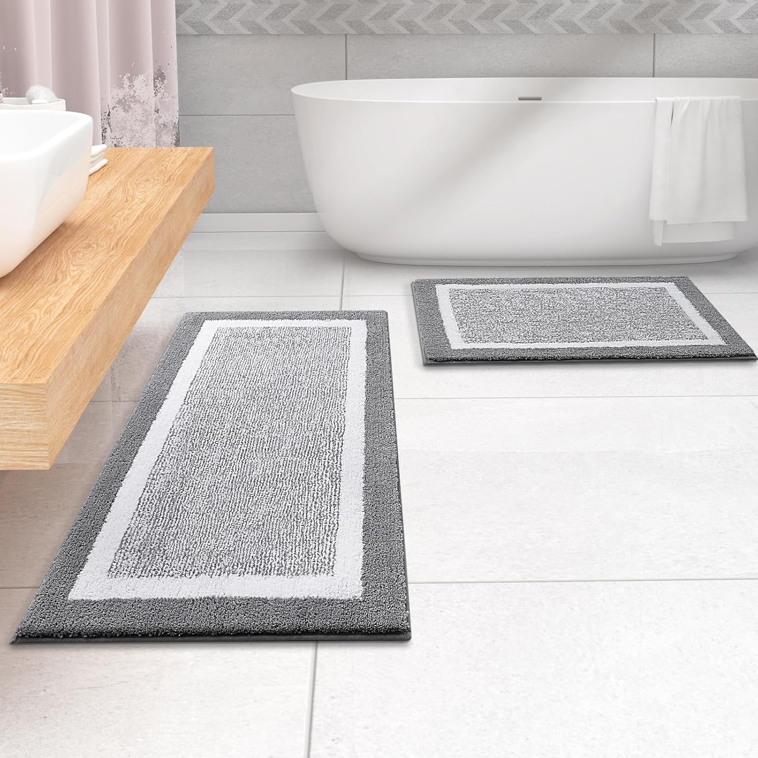 Smiry Неплъзгащ се килим за баня, Супер мека абсорбираща постелка за баня, Переща се постелка за баня, Пухкава постелка за душ за баня, Микрофибърна постелка за баня, 60 x 90 см, Сив