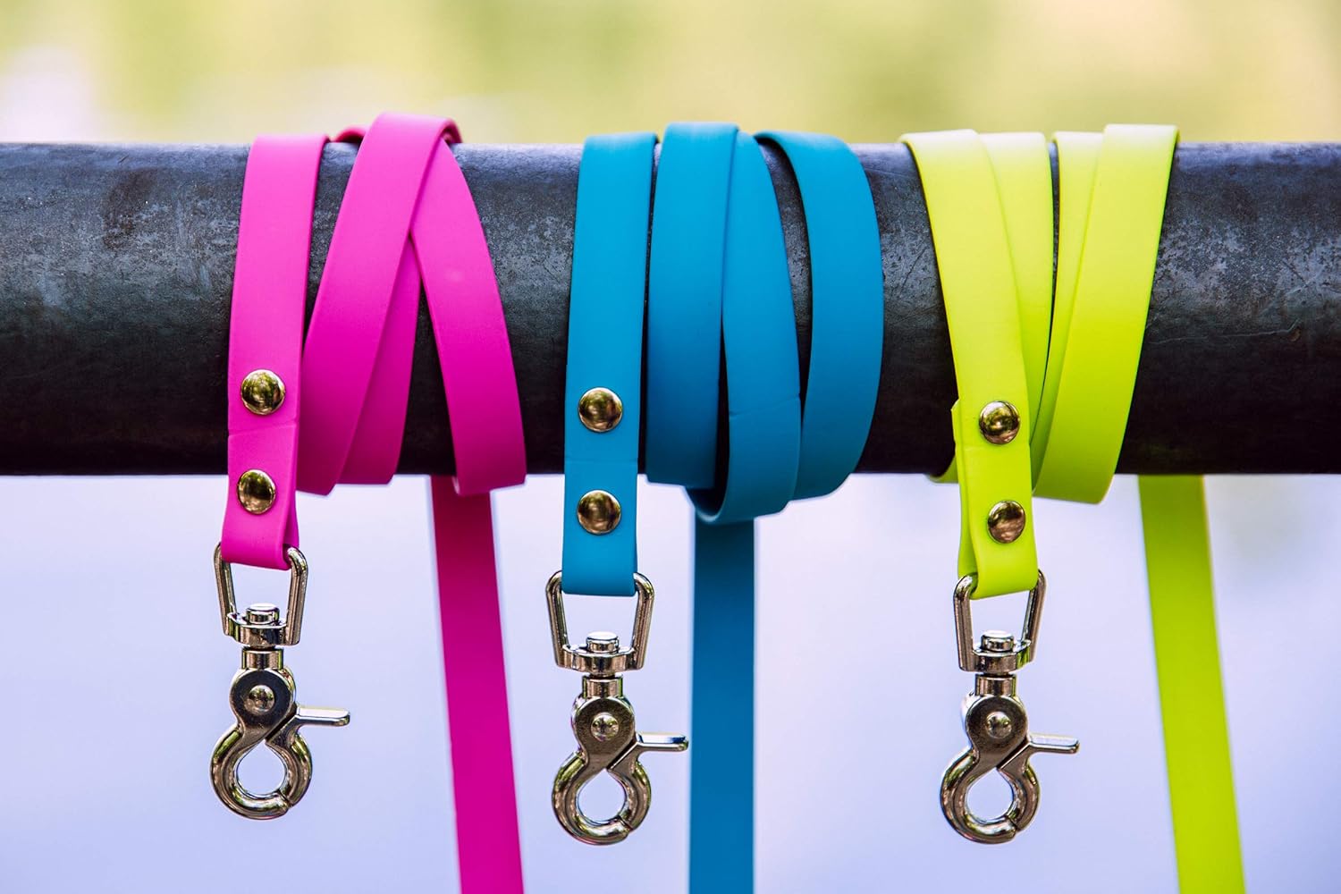 Нашите поводи за кучета SNOOT са изработени от издръжлива полиестерна материя, покрита с устойчив на атмосферни влияния термопластичен полиуретан (TPU). Така че е водоустойчива и не се самоабсорбира.