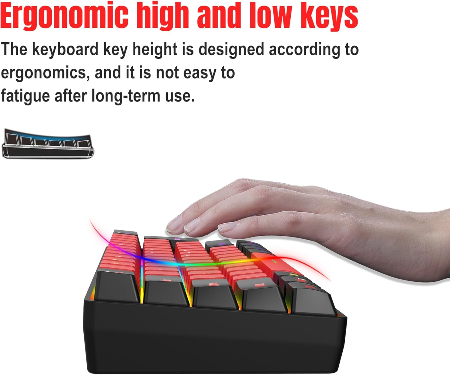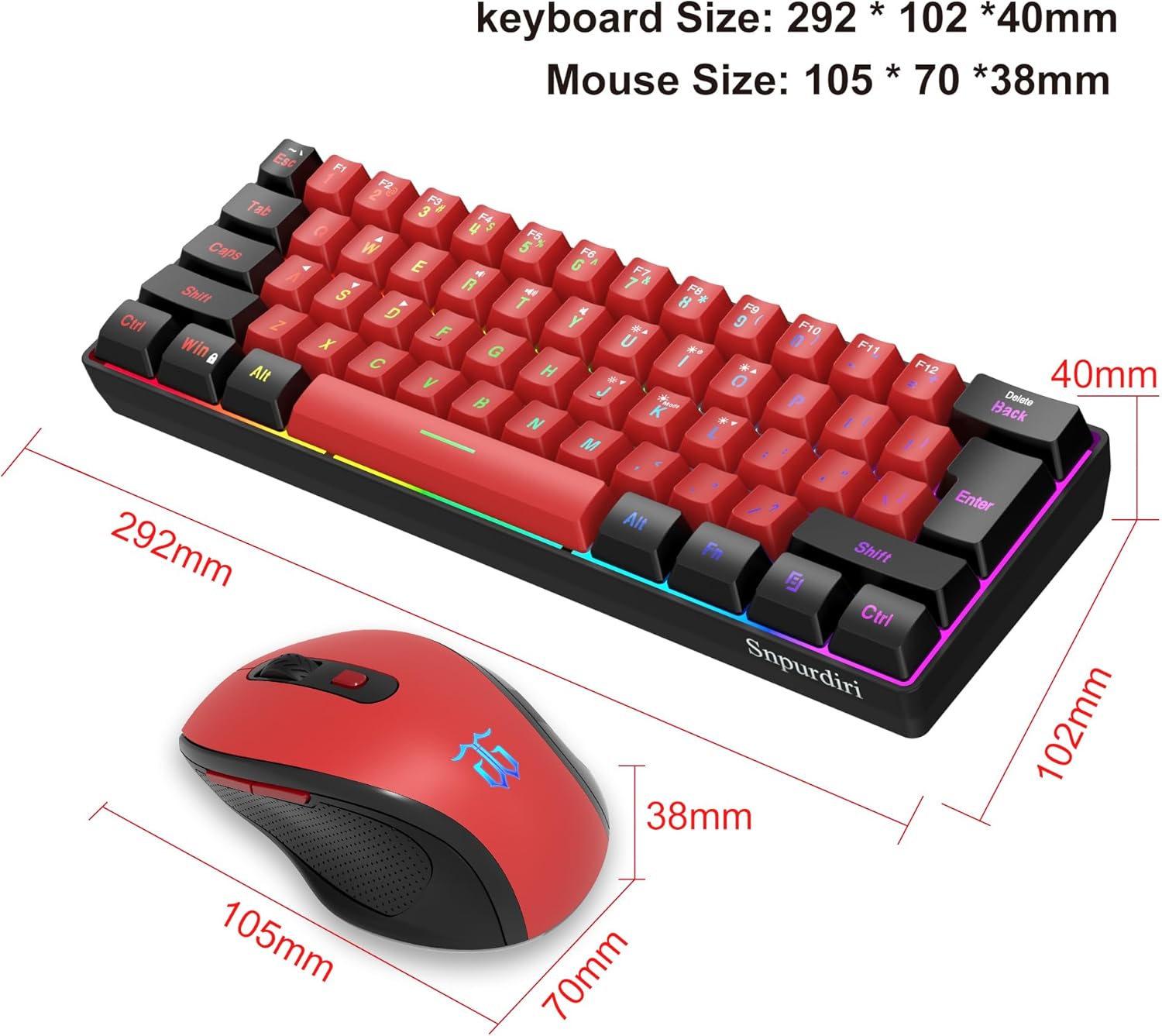 Snpurdiri 60% безжична геймърска клавиатура и мишка, включва 2.4G малка мини клавиатура с 60% механично усещане, ергономичен дизайн, вертикална мишка (черно-червена)