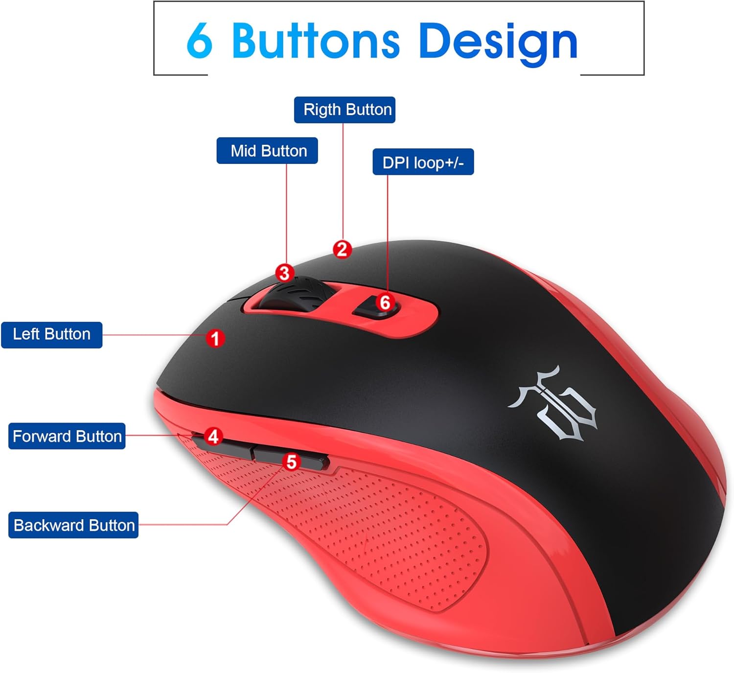 • 【Надеждно захранване】Тази презареждаща се клавиатура с 60 клавиша е оборудвана с батерия 2000 mAh, а мишката изисква стандартна AAA батерия. Зареждането на клавиатурата с 5V/1A отнема само 2 часа и може да се използва непрекъснато повече от 44 часа. Поддържа енергоспестяващ режим на заспиване.