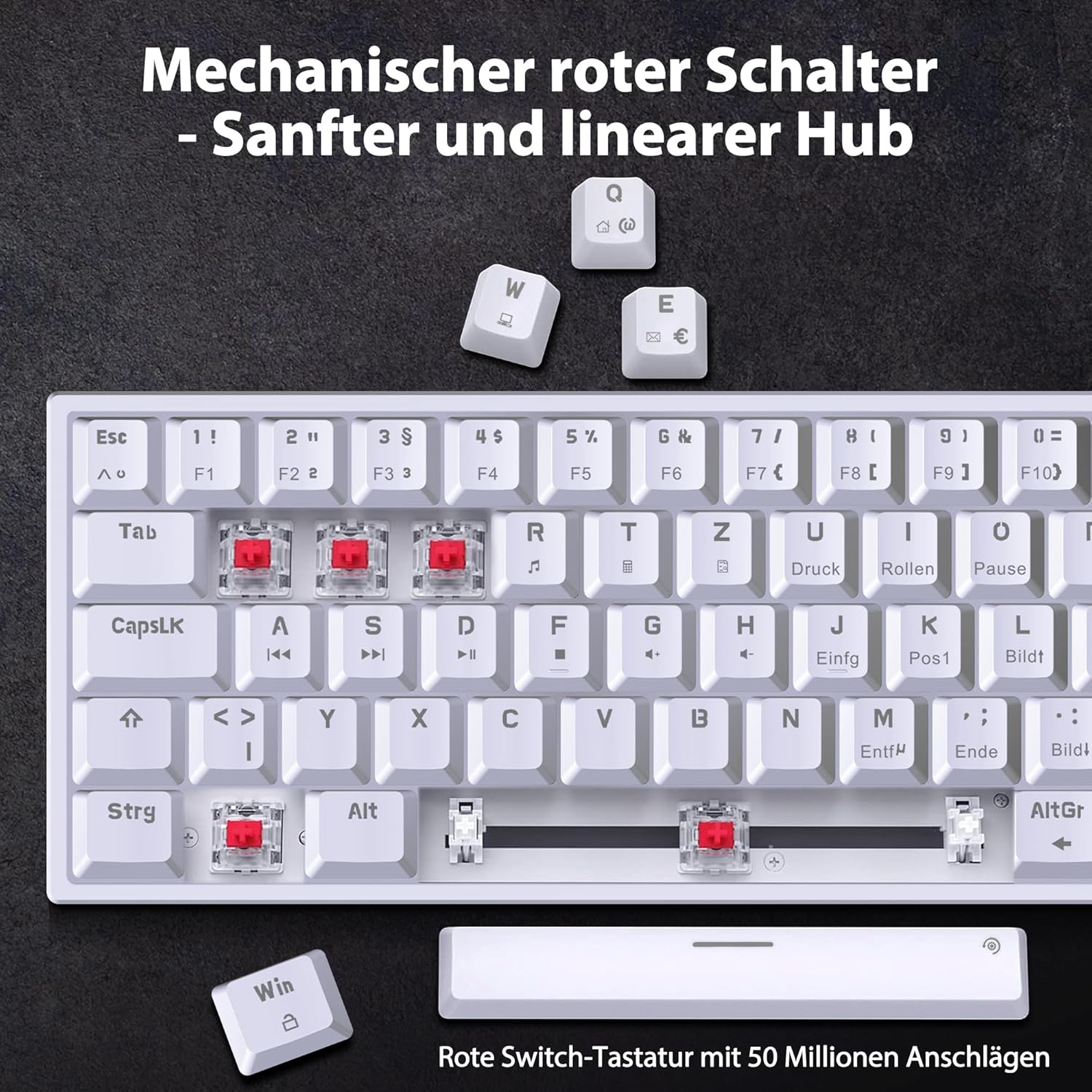 • Геймърска клавиатура бяла със син превключвател: Тази 60% клавиатура е проектирана с цианосини превключватели. За писане и игри, сините превключватели осигуряват точни и отзивчиви команди с бутони; Ясен звуков шум от щракване и тактилна обратна връзка при удар ви предлагат напълно свободно изживяване.