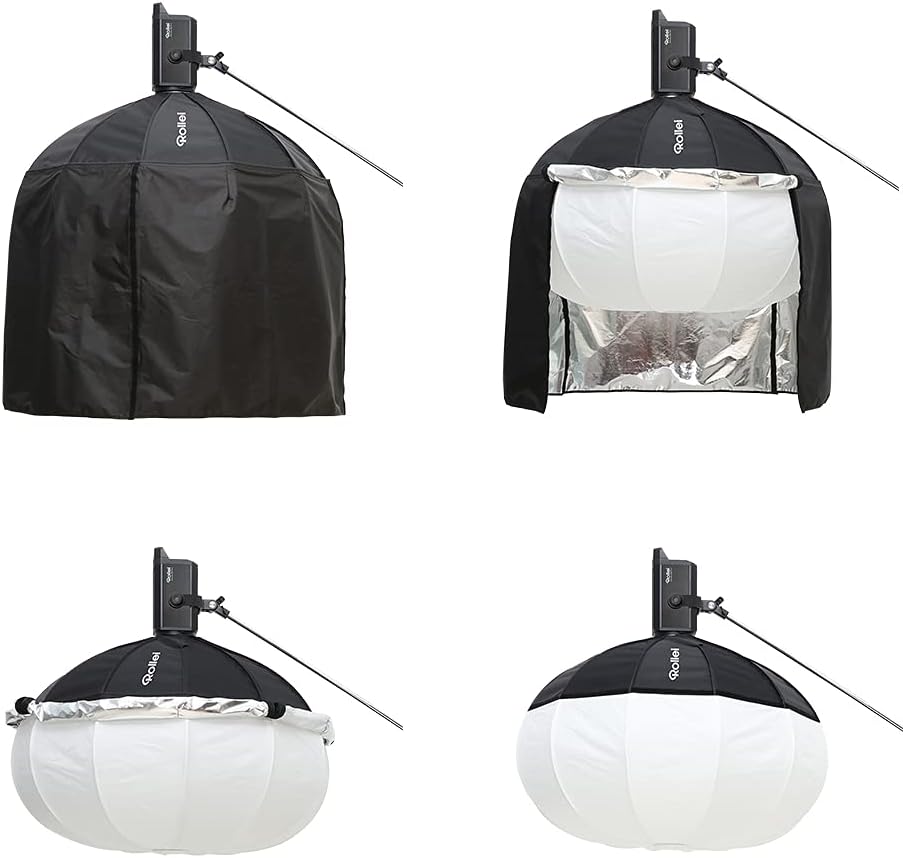 Софтбокс Rollei Balloon със завеса за контрол на светлината, кръгъл светлинен оформител 100 см с Bowens S-Type байонет за студийни светкавици и LED непрекъснато осветление 28201