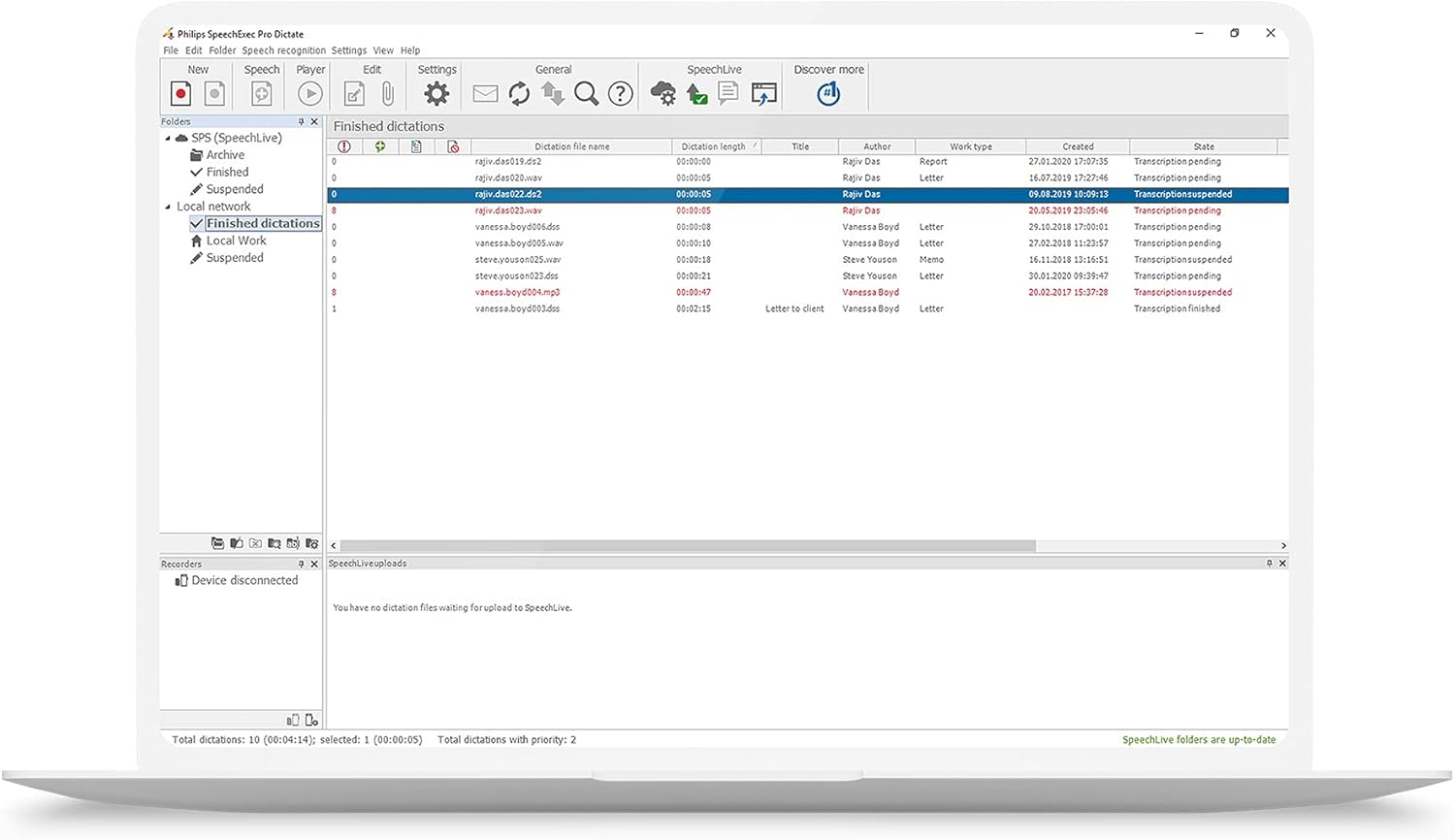Оптимизирайте работния си процес с професионална дигитална транскрипция. SpeechExec ви предоставя платформа за управление на транскрипцията, която съчетава автоматизация на работния процес, възможности за транскрипция и разпознаване на реч в едно решение. Никога не е било възможно да се създаде лесна и устойчива на промени работна среда в бизнес области, изискващи много документация.
