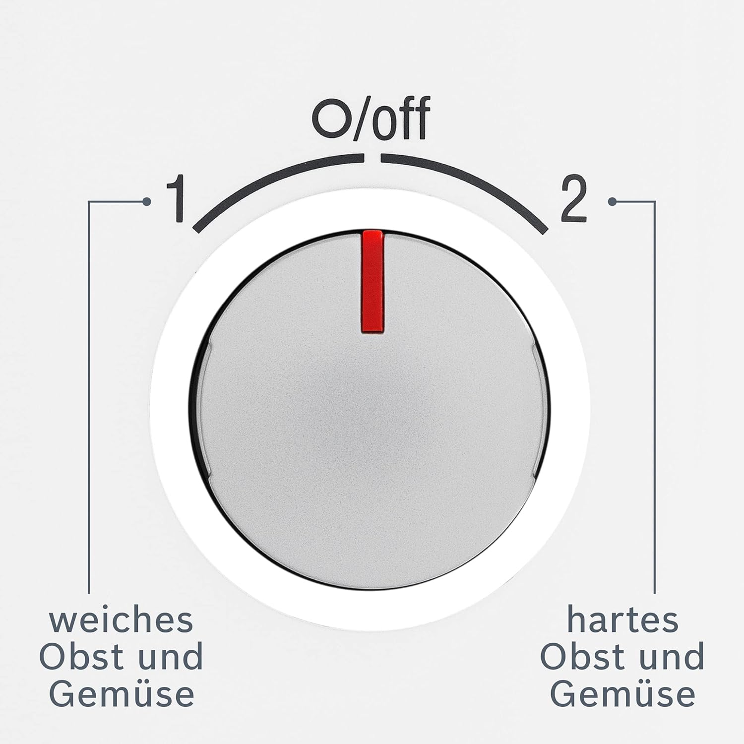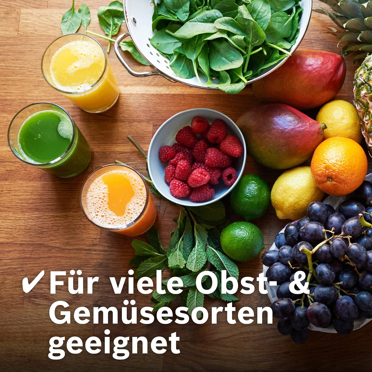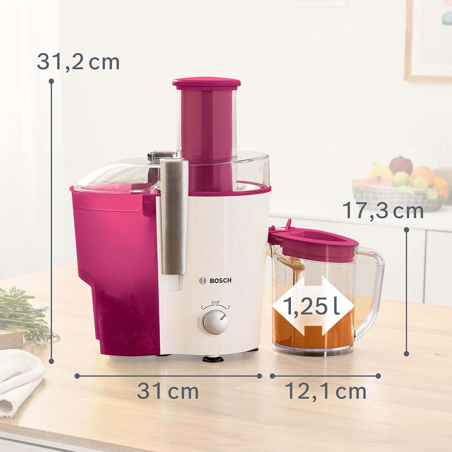 Сокоизстисквачка Bosch Home Appliances VitaJuice 2 MES25C0 700 W XL улей за пълнене Микрофилтър от неръждаема стомана Цедка Чучур за наливане с DripStop Бяла / Череша Касис