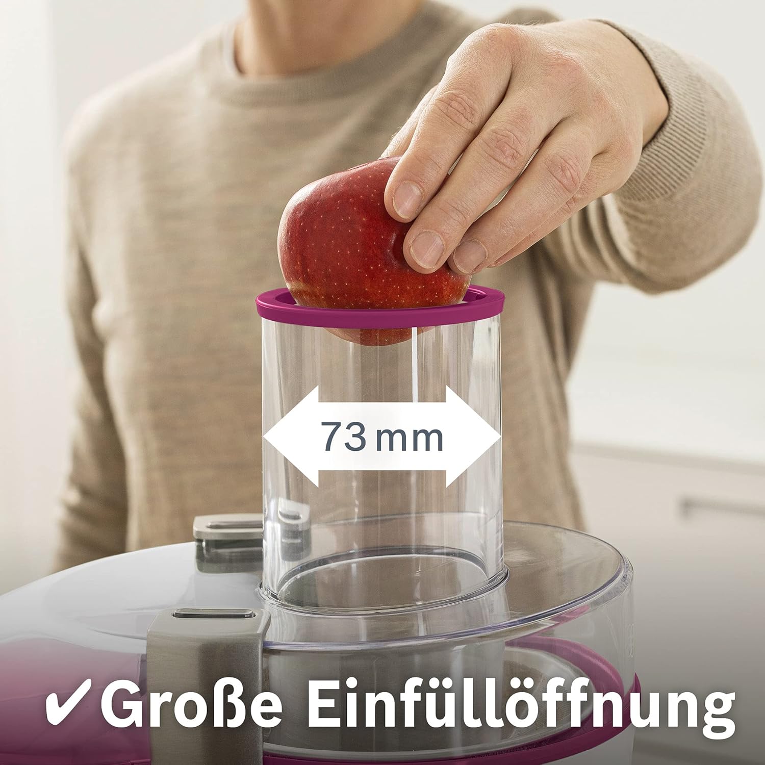 • Изключително голям отвор за пълнене на плодове (цели ябълки) и зеленчуци - не е необходимо предварително нарязване