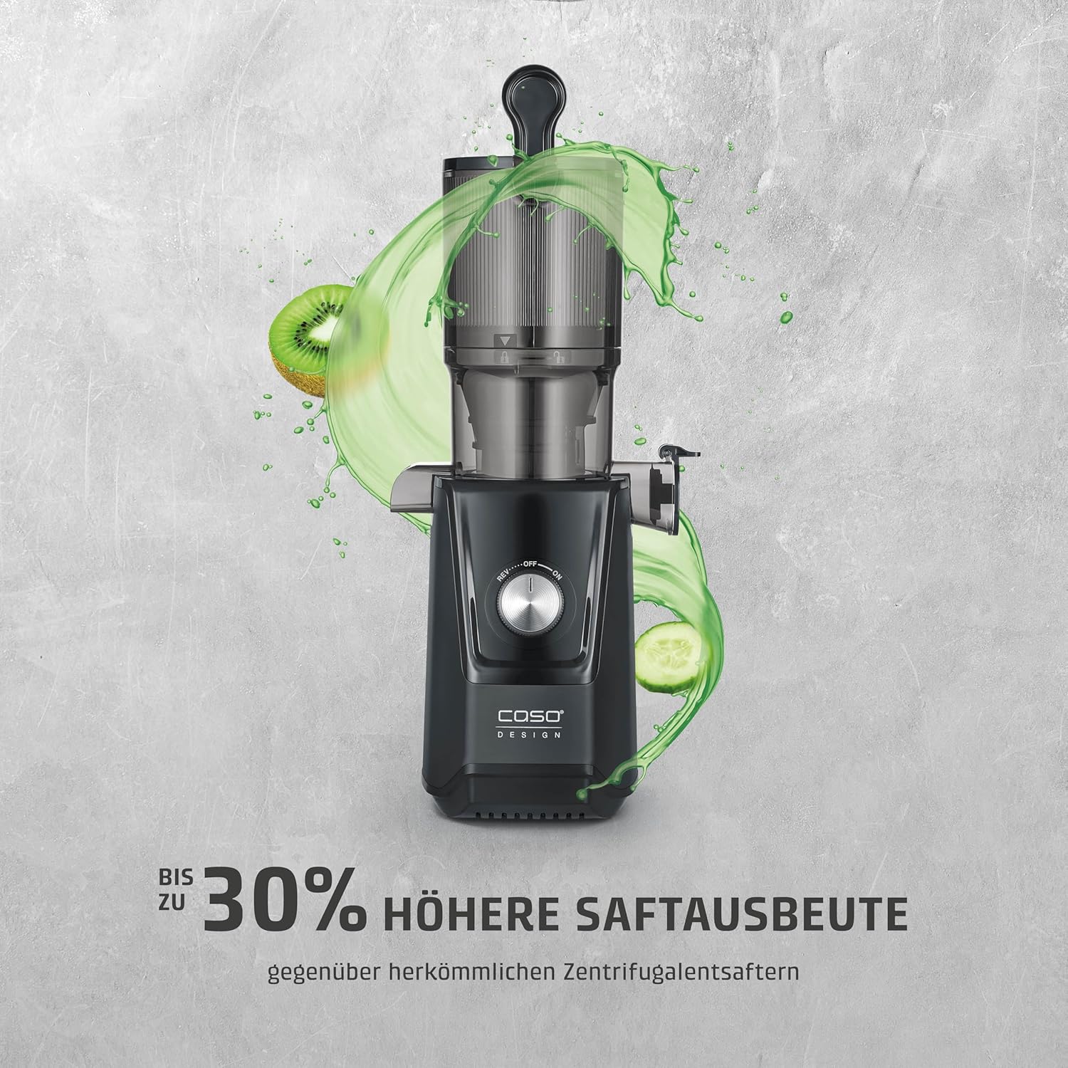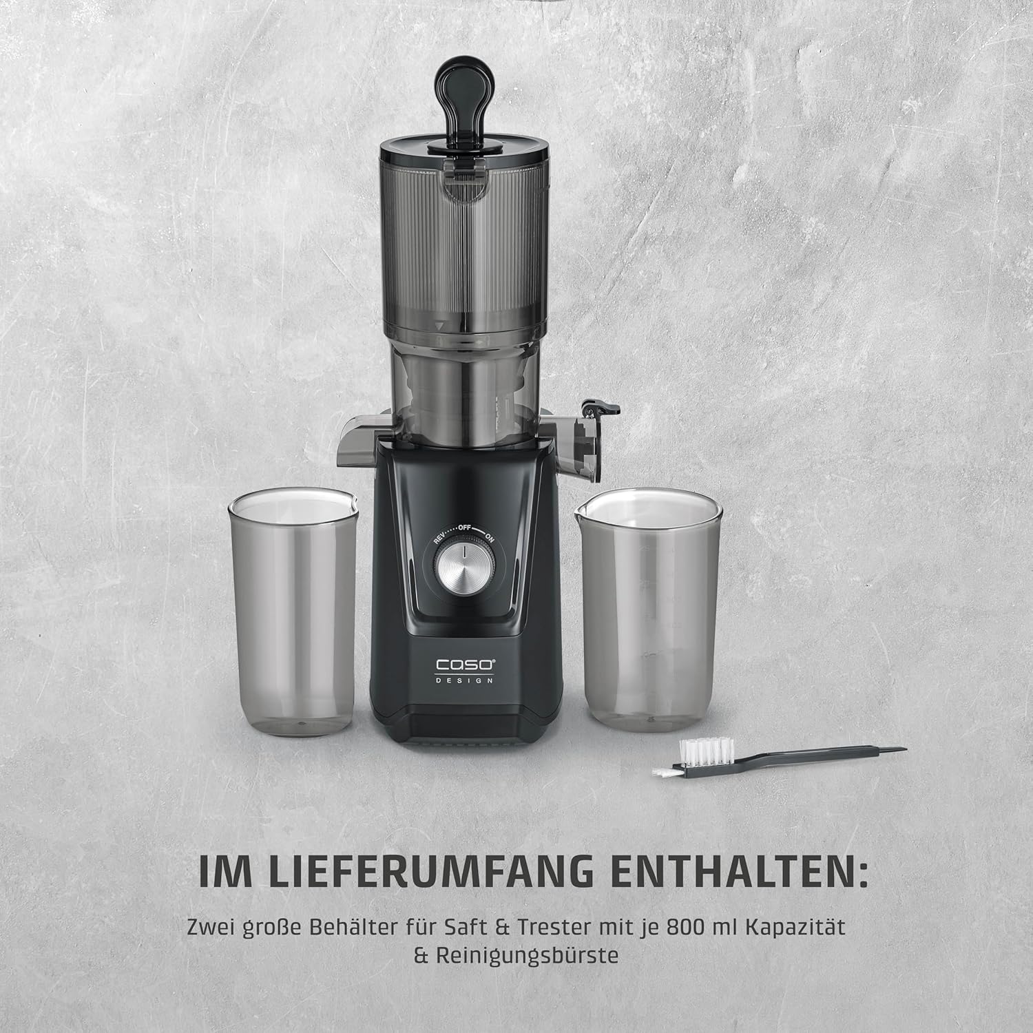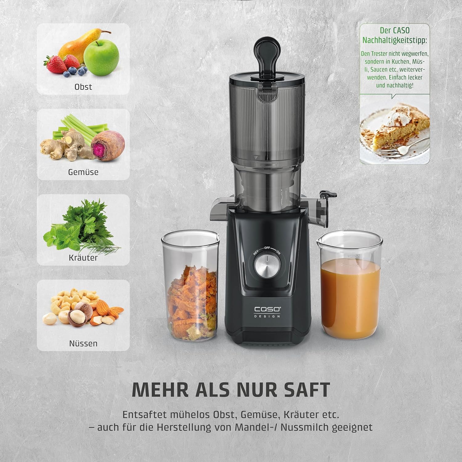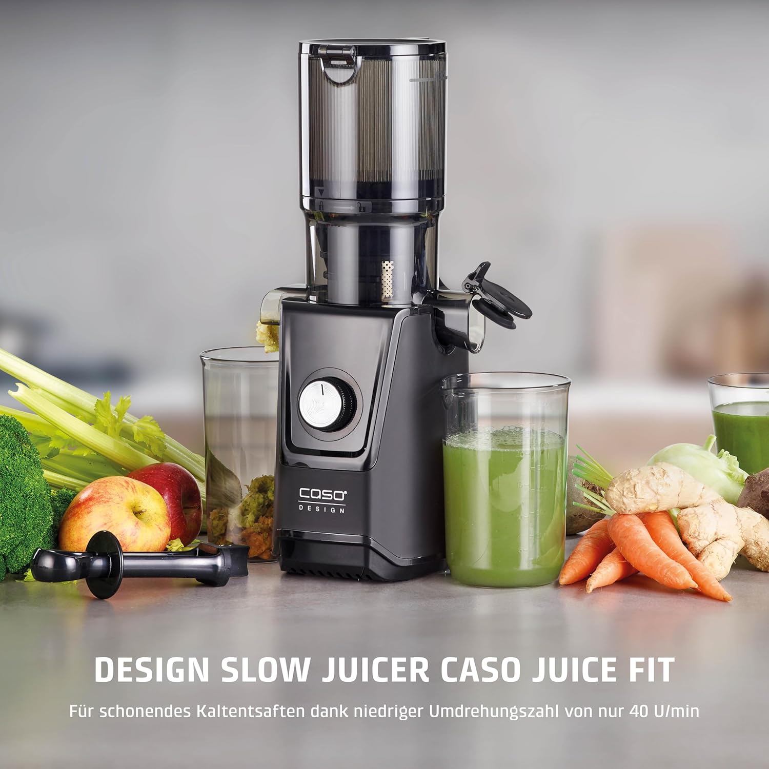 Сокоизстисквачка CASO Juice Fit Slow, Сокоизстисквачка, Нежно изцеждане благодарение на ниската скорост на въртене (40 об/мин), Голям отвор за пълнене с диаметър 105 мм, Сокоизстисквачка за плодове, зеленчуци, Без BPA