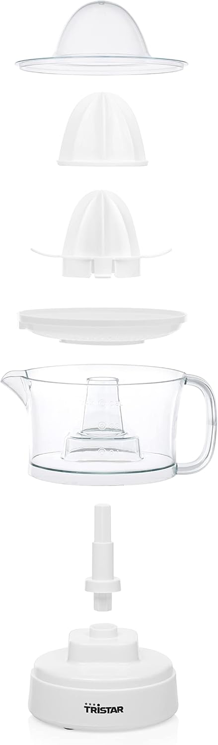 Цитрусовата сокоизстисквачка Tristar има всичко необходимо. Конусите за пресоване се завъртат наляво и надясно, за да извлекат всичко от портокали, лимони, лаймове и други плодове. Цедката за пулпа извлича чист плодов сок на края. Подвижният контейнер с капацитет 0,5 литра улеснява още повече пълненето на сока директно в чаша или добавянето му към дресинга. Благодарение на неплъзгащите се крачета, цитрусовата сокоизстисквачка стои здраво на работния плот.