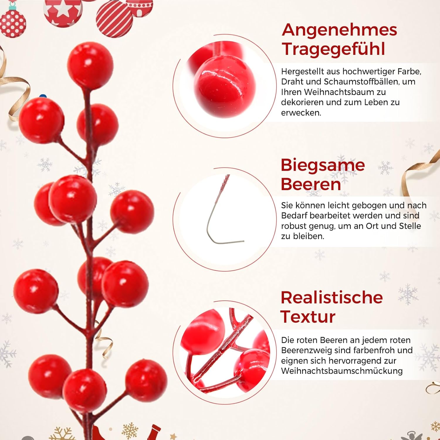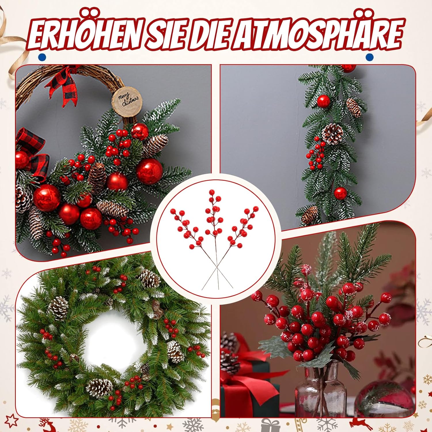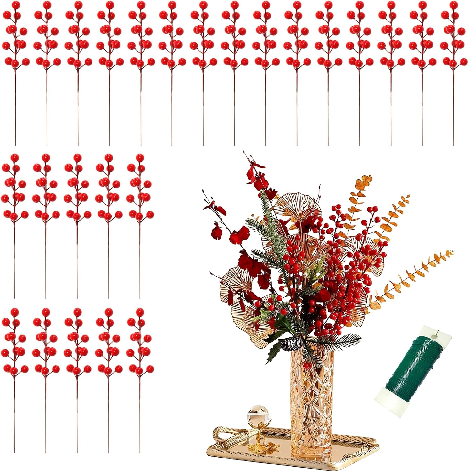 25 изкуствени червени плодове, клонки от джел с дължина 23 см, идеални за коледни украси за елха, занаяти, изкуствени цветя, коледни декорации и други