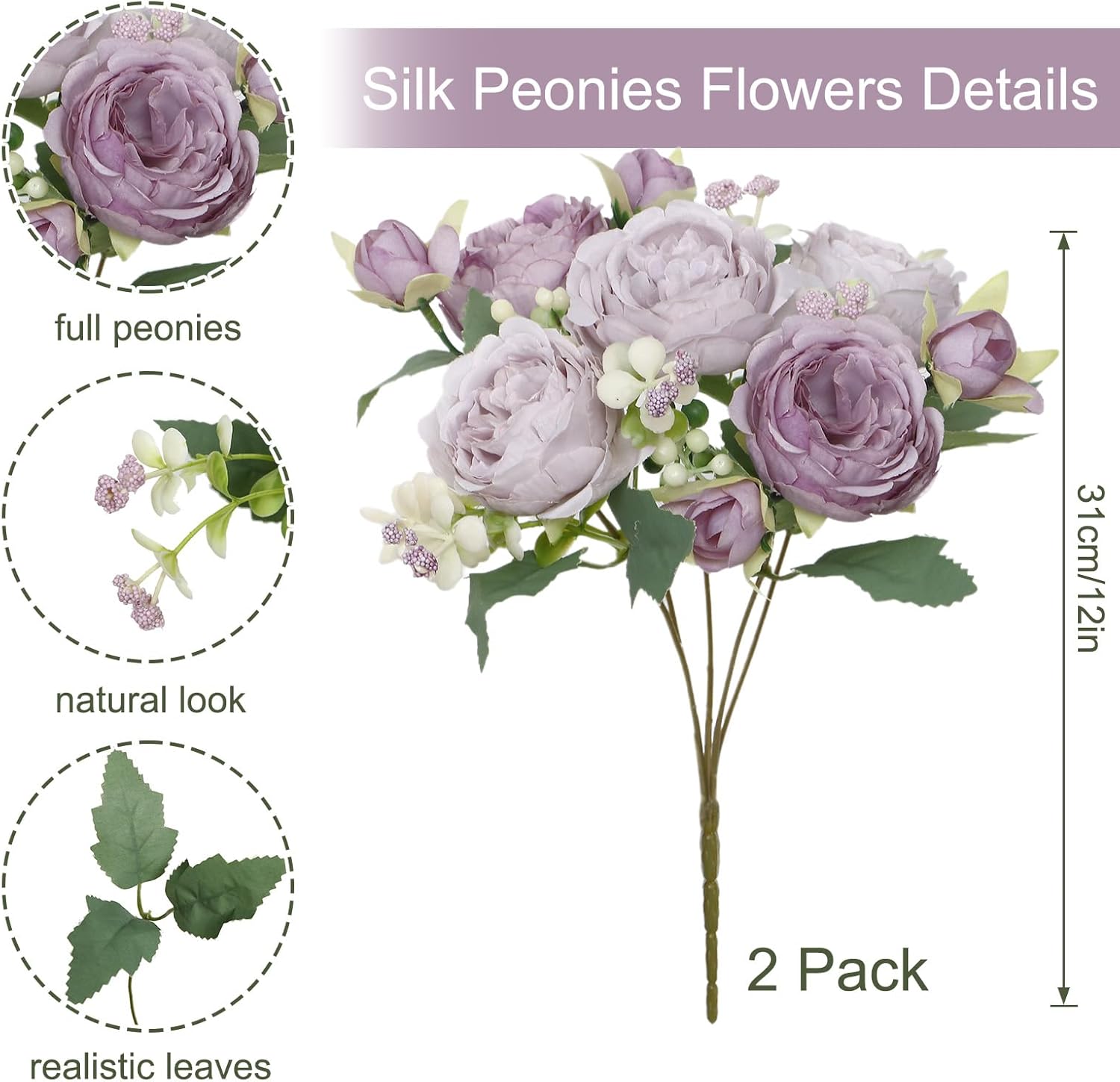 SOMYTING Божури Изкуствени цветя 2 връзки Букет от изкуствени божури Изкуствени цветя Букети от копринени божури за сватбено тържество Топпери за маса Цветна аранжировка Декор за дома и кухнята