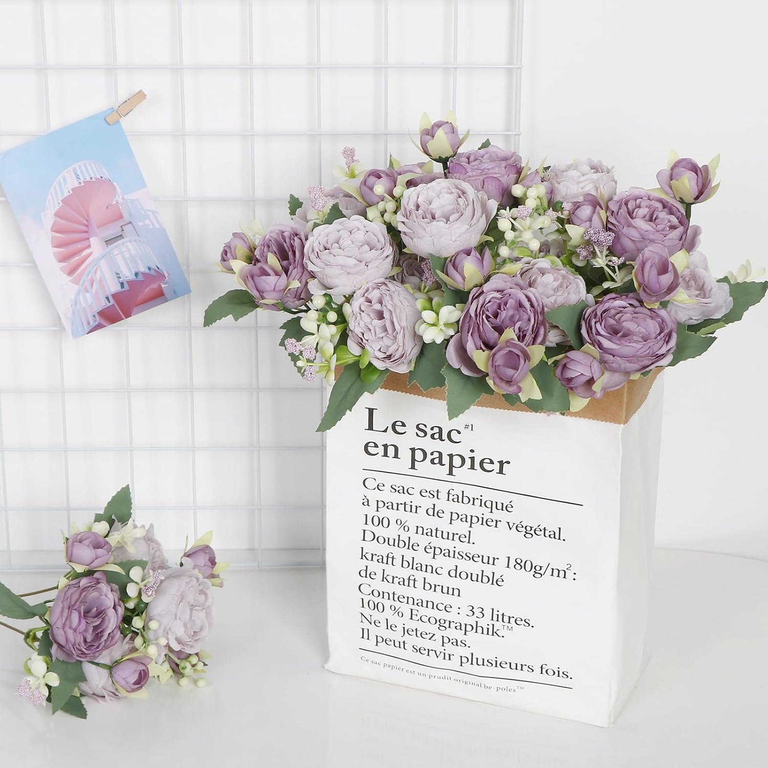 • ЛЕСНА ПОДДРЪЖКА КОПРИНЕНИ БОЖУРИ: Дълготрайно красиви и лесни за почистване: тези реалистични копринени цветове на божури са ярки и красиви през цялата година, могат да ви спестят поливане, резитба и други проблеми; Идеални са за декорация на кухненска маса, декорация на маса в спалня, рустик домашен декор.