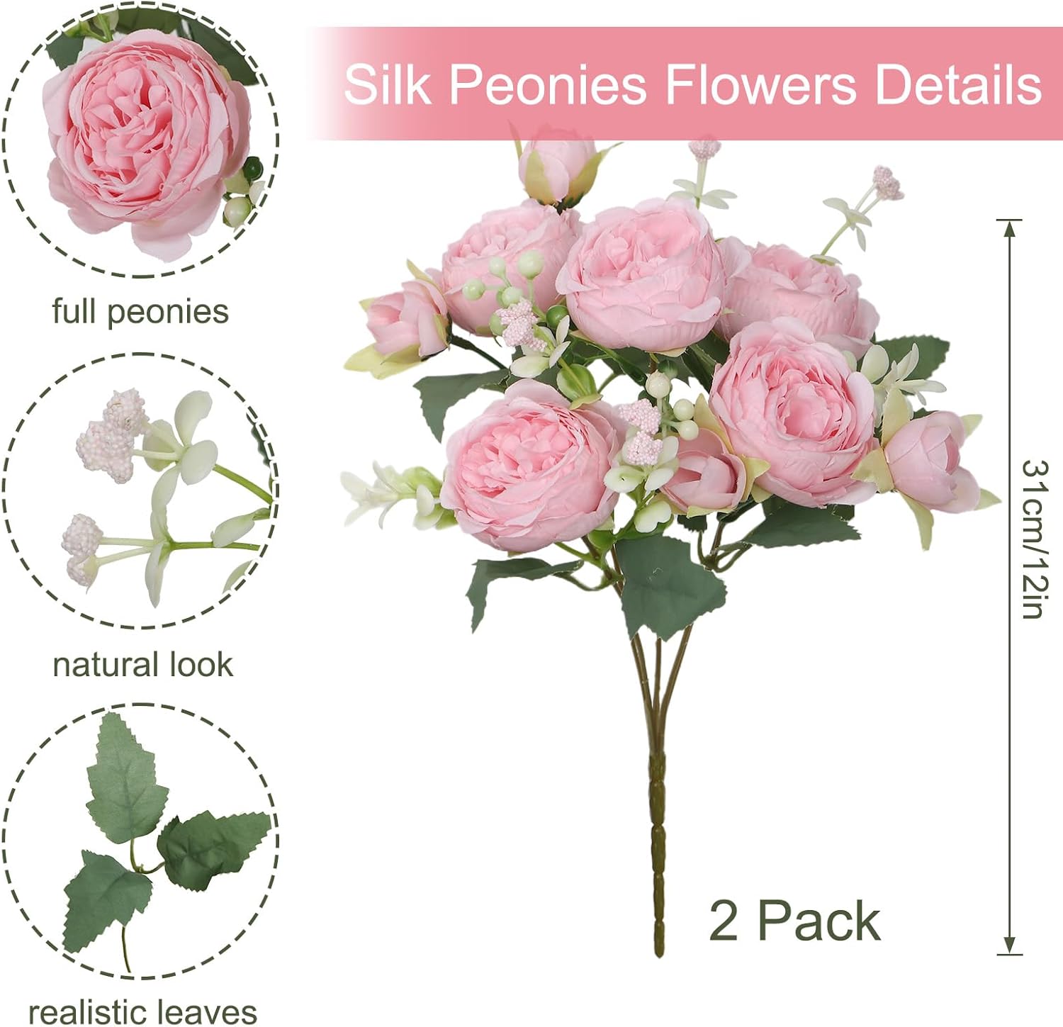 SOMYTING Божури Изкуствени цветя 2 връзки Букет от изкуствени божури Изкуствени цветя Букети от копринени божури за сватбено тържество Топпери за маса Цветна аранжировка Декор за дома и кухнята