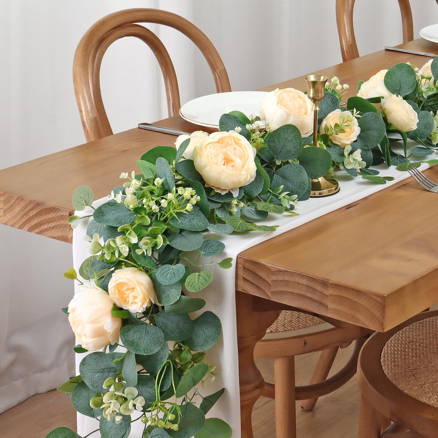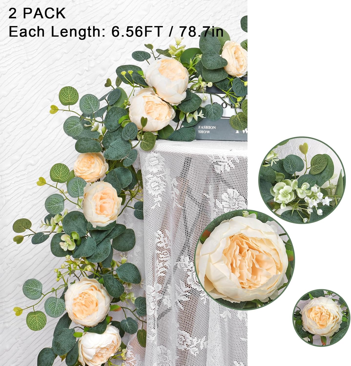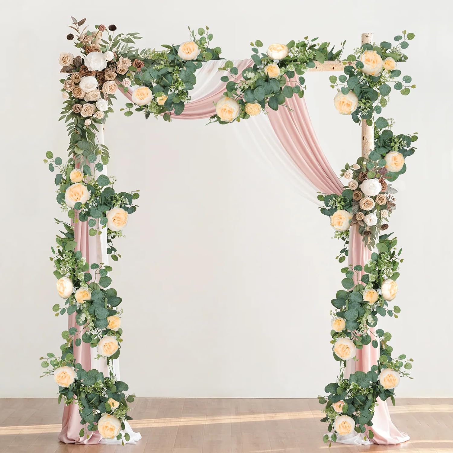 Изкуствените розови гирлянди имат добра здравина, гъвкавост и могат да се огъват във всяка желана форма. Те могат да се използват според личните нужди, безплатен „Направи си сам“ дизайн, за украса на розовия гирлянд не само като интериорна декорация, но и като декорация за сватбен фон на открито или като декорация за маса.
