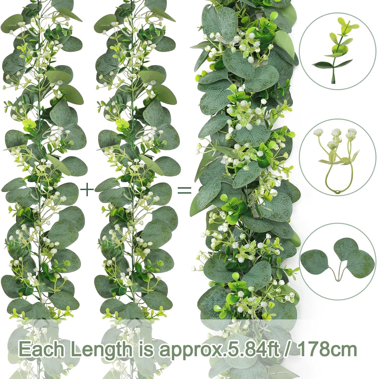 SOMYTING Гирлянди от евкалипт, пакет от 2 изкуствени гирлянди от смесени евкалиптови листа