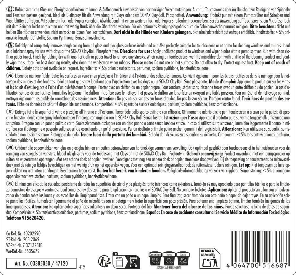 Sonax 03385050 Препарат за измиване на предно стъкло, прозрачен, 5 л