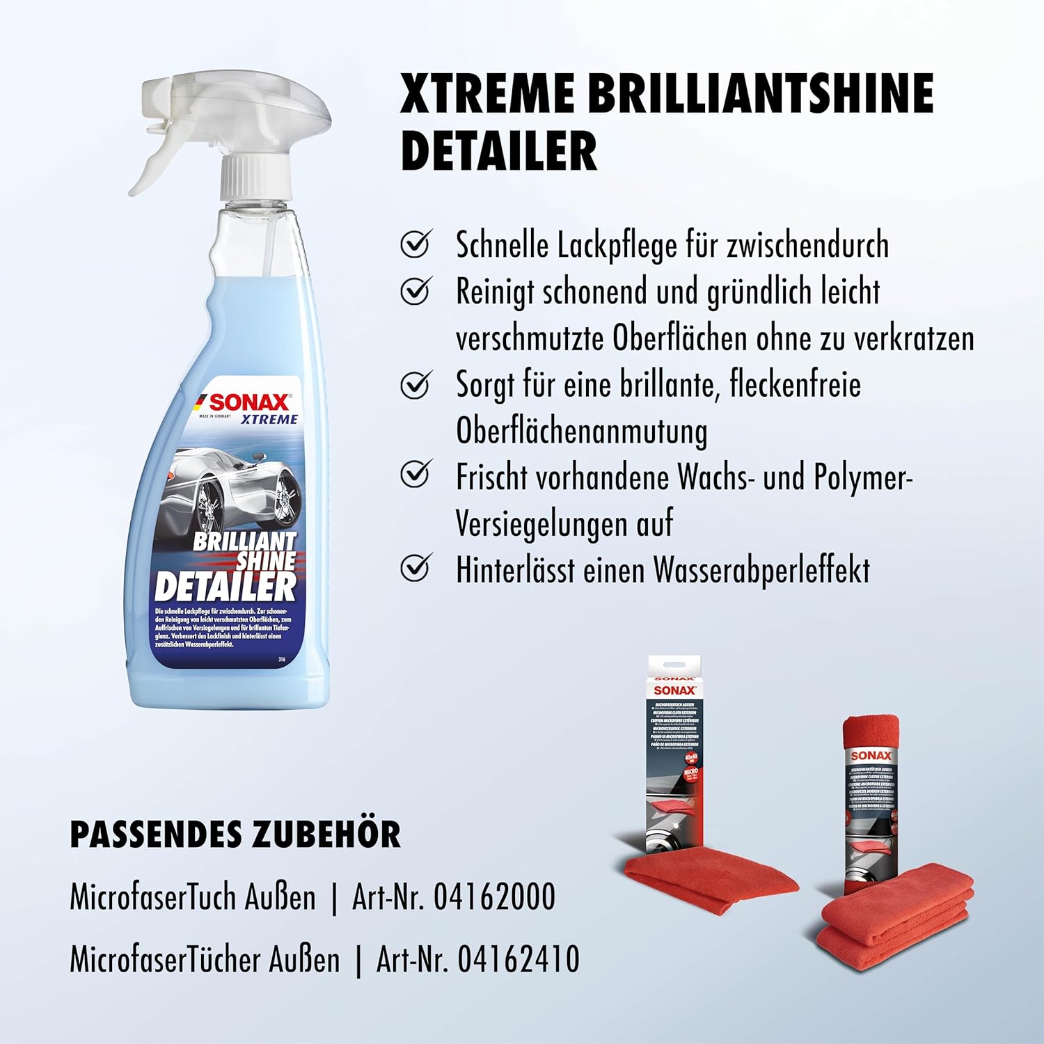 Бърза грижа за боята междувременно. Нежно и старателно почиства леко замърсени повърхности без надраскване. Осигурява брилянтно усещане на повърхността без петна. Освежава съществуващи восъчни и полимерни уплътнители и оставя допълнителен ефект на водни капки.