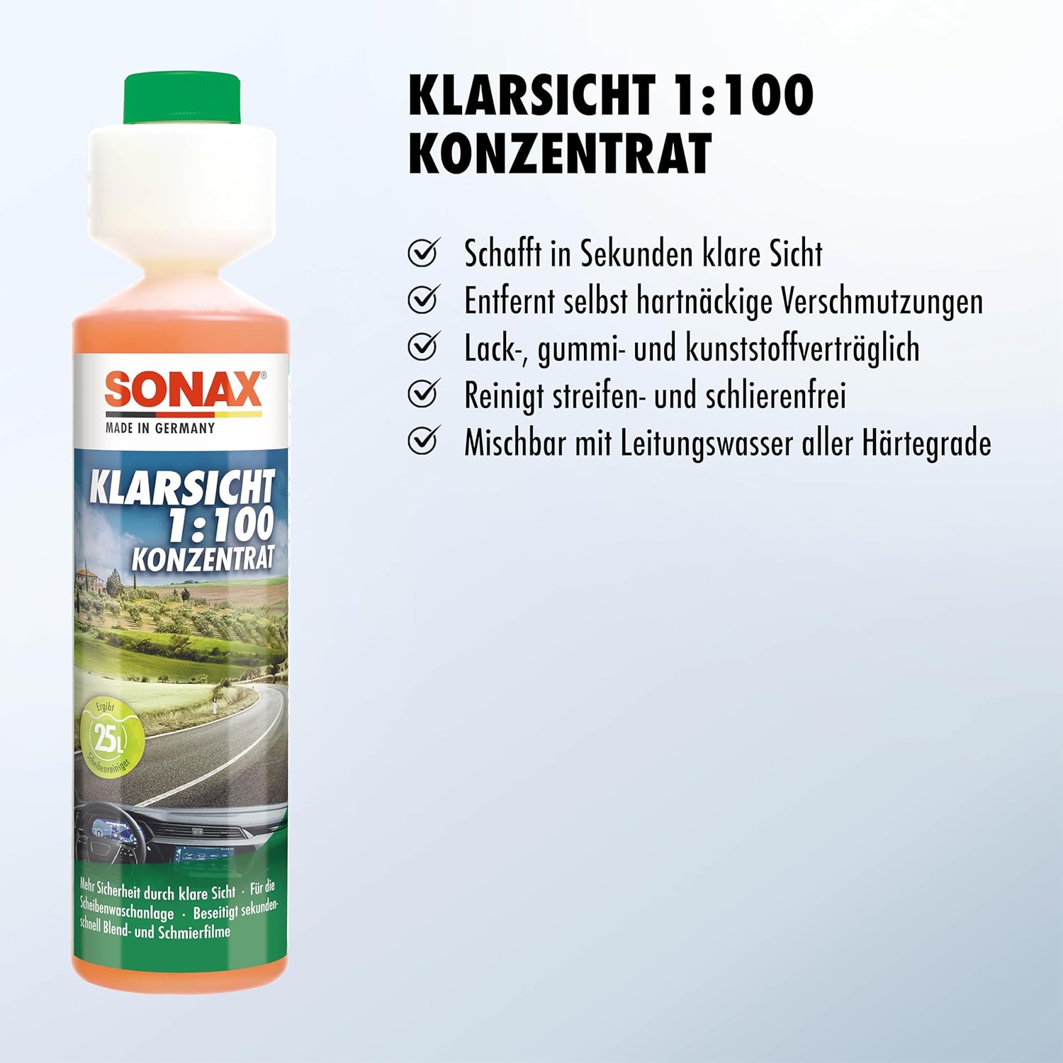 • Съдържание на кутията: 1x SONAX 03711410 Klarsicht 1:100 концентрат (250 мл)