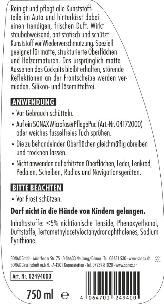 От 1950 г. насам SONAX разработва и произвежда високоефективни продукти за грижа за автомобила в Нойбург ан дер Донау, които отговарят на най-високите стандарти. Независимо дали става въпрос за моторни спортове, тунинг или класически автомобили, SONAX винаги е на разположение на автомобилните ентусиасти и експерти, когато става въпрос за постигане на перфектния външен вид на техните превозни средства. Продуктовата гама включва продукти за грижа за боята, почистващи продукти за интериор и екстериор, както и продукти за зимна грижа за автомобила. Специализирани продукти за индустрията и сервизите, машинна грижа за автомобила в автомивки, велосипеди и търговски превозни средства, както и продукти за почистване и грижа за професионално детайлиране на автомобили допълват гамата.