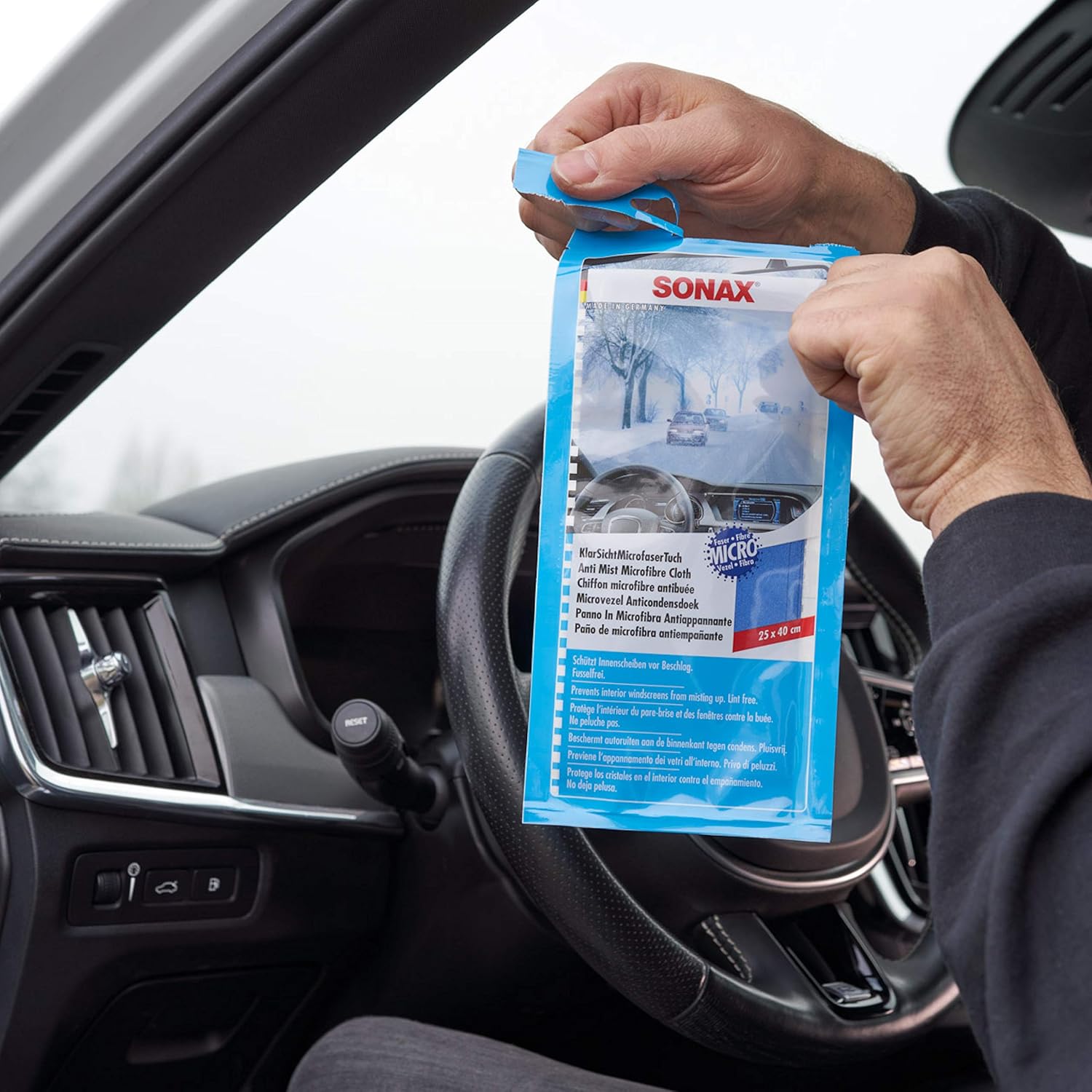 SONAX KlarSicht Микрофибърна кърпа (1 бр.) Кърпа против замъгляване без власинки, предпазва от замъгляване на лещата и осигурява ясна видимост. Артикулен номер 04212000, син
