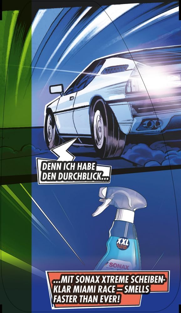 SONAX Xtreme ScheibenKlar Special Edition Miami Race (1 литър) за премахване на замърсявания от прозорци и за по-добро овлажняване на стъклените повърхности Артикулен номер 02383410