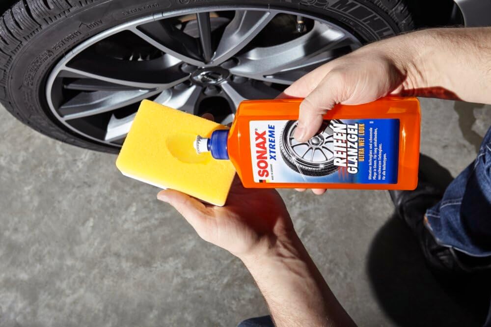 SONAX Xtreme Tire Gloss Gel (500 мл) Подхранва и предпазва гумата и гумите от напукване и избледняване, Дълготраен гланц за гуми, Артикулен номер 02352410