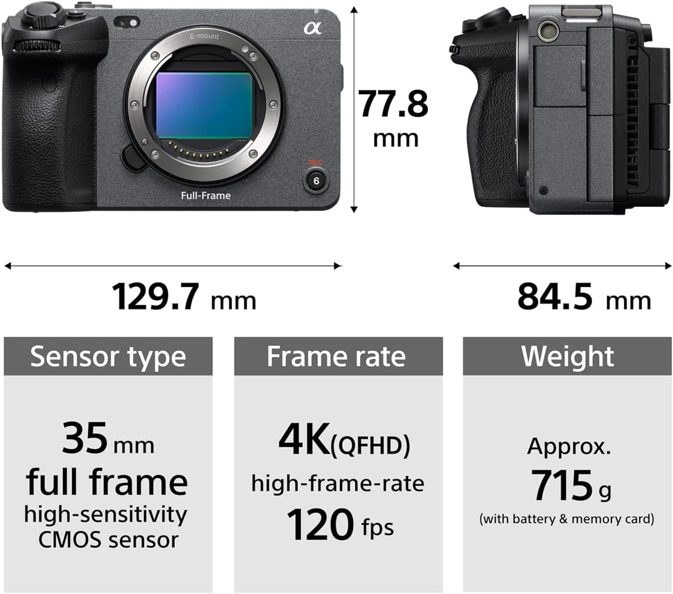 Sony Cinema Line FX3 пълноформатен фотоапарат | 4K 120P | S-Cinetone | Двойна база ISO | Компактен и лек | Създаден за режисьори (‎ILME-FX3) - сив