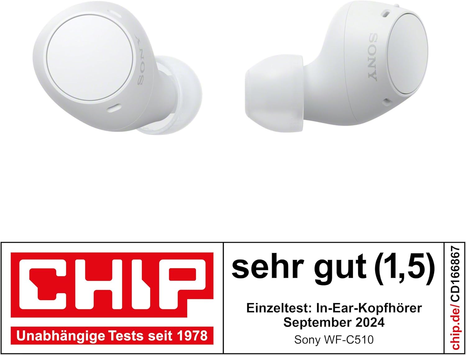 Sony WF-C510 Наистина безжични слушалки – малки, леки, Bluetooth слушалки за уши с многоточкова връзка, околен звук, IPX4 рейтинг, Spotify Tap, бързо зареждане, 22 часа живот на батерията, iOS и Android – бели