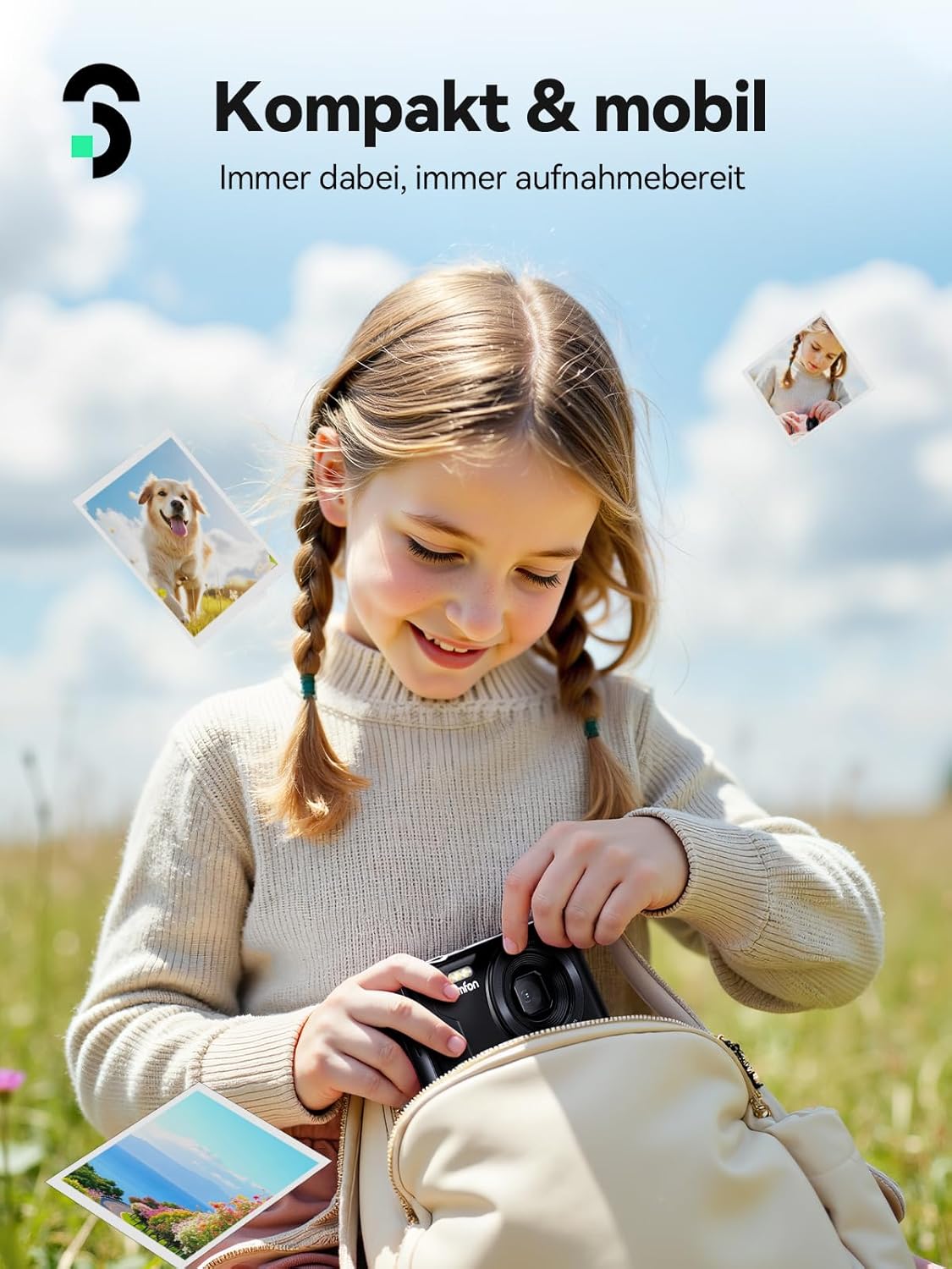 • Лесен за употреба, мощни функции - идеален за деца и начинаещи: Детският дигитален фотоапарат има вградена светкавица, 19 креативни филтъра, функция за непрекъснато снимане, разпознаване на лица, запис на time-lapse, видео на забавен каданс и функция за воден знак с дата и час. Независимо дали играят на открито, на партита или на пътешествие, изпълнено с открития, този дигитален фотоапарат е идеалният спътник за деца, тийнейджъри и начинаещи, за да разгърнат креативността си и да запечатат специални моменти.