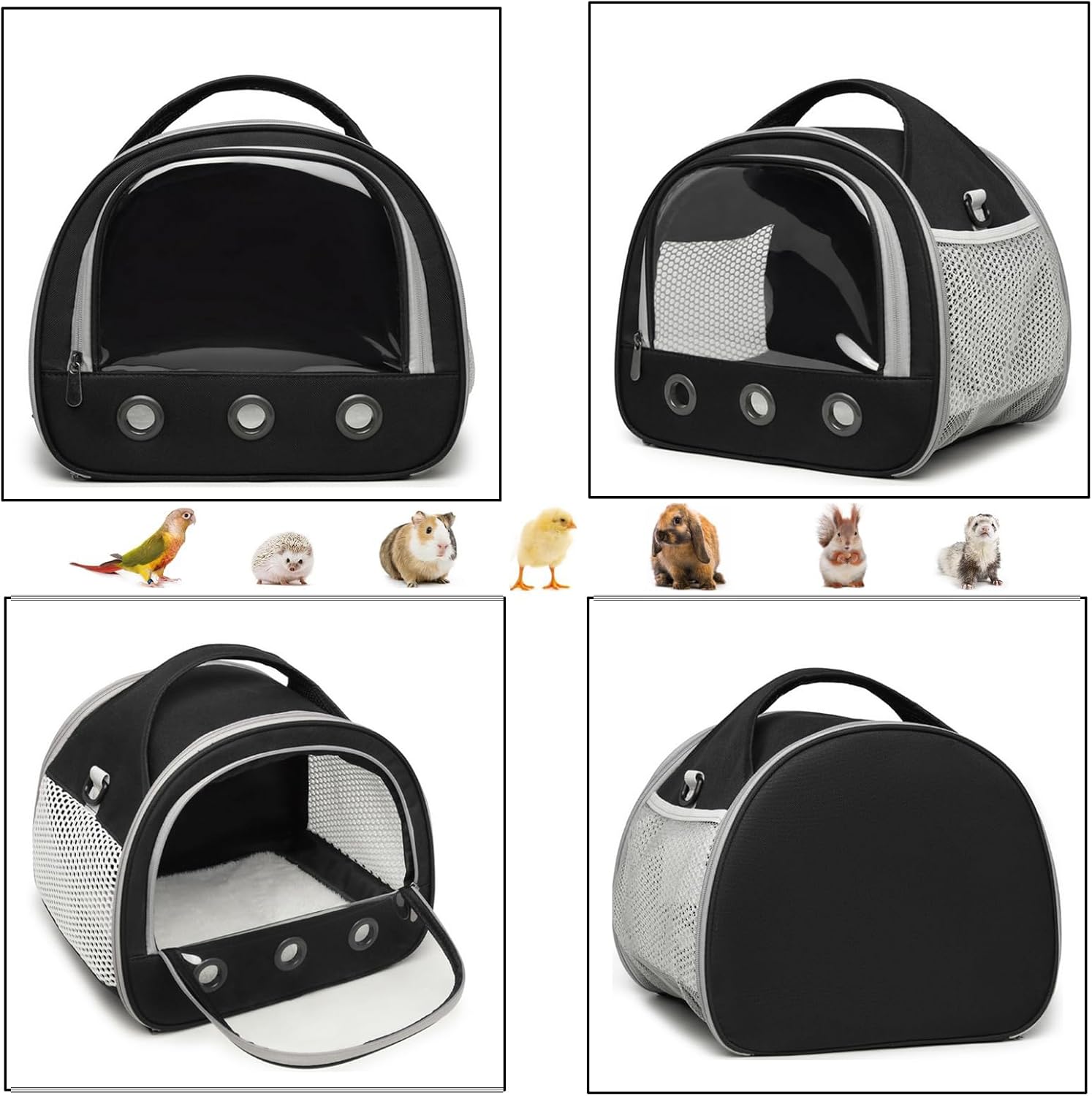 SOONHUA Преносима чанта за носене на малки животни за морски свинчета с прозрачен прозорец и дишаща мрежа за птици, плъхове, морски свинчета, катерици