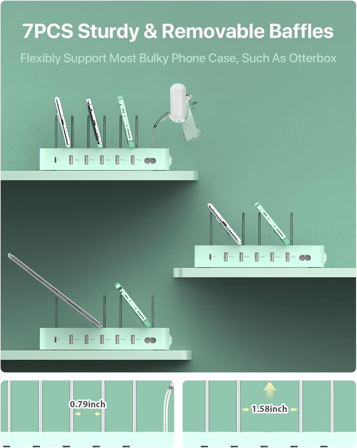 • ЗАРЕЖДАНЕ, ЧИСТОТА И ОРГАНИЗИРАНО - Край на заплетените кабели, без купчина зарядни устройства, всичко на едно място, чисто и организирано. Бял цвят с издръжливо матово покритие, светло син LED и сиви силикагел ленти правят тази зарядна станция истинска първокласна зарядна станция. Проектирана да се побере навсякъде: компания, офис, заседателна зала, дом, хол, спалня, кухня, хотел, ресторанти, класна стая.