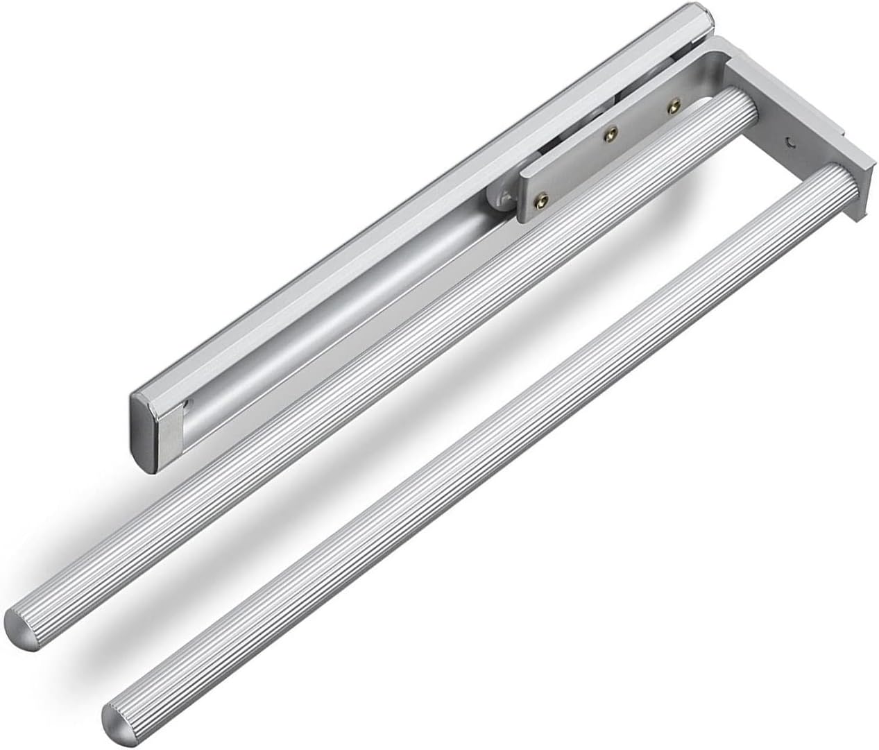 • Този висококачествен телескопичен държач за кърпи е функционално допълнение към банята или кухнята, което се вписва хармонично в съществуващия декор. Практичният и компактен държач за кърпи е подходящ за монтаж под работния плот, мивката, отстрани на шкафа или в нишата.