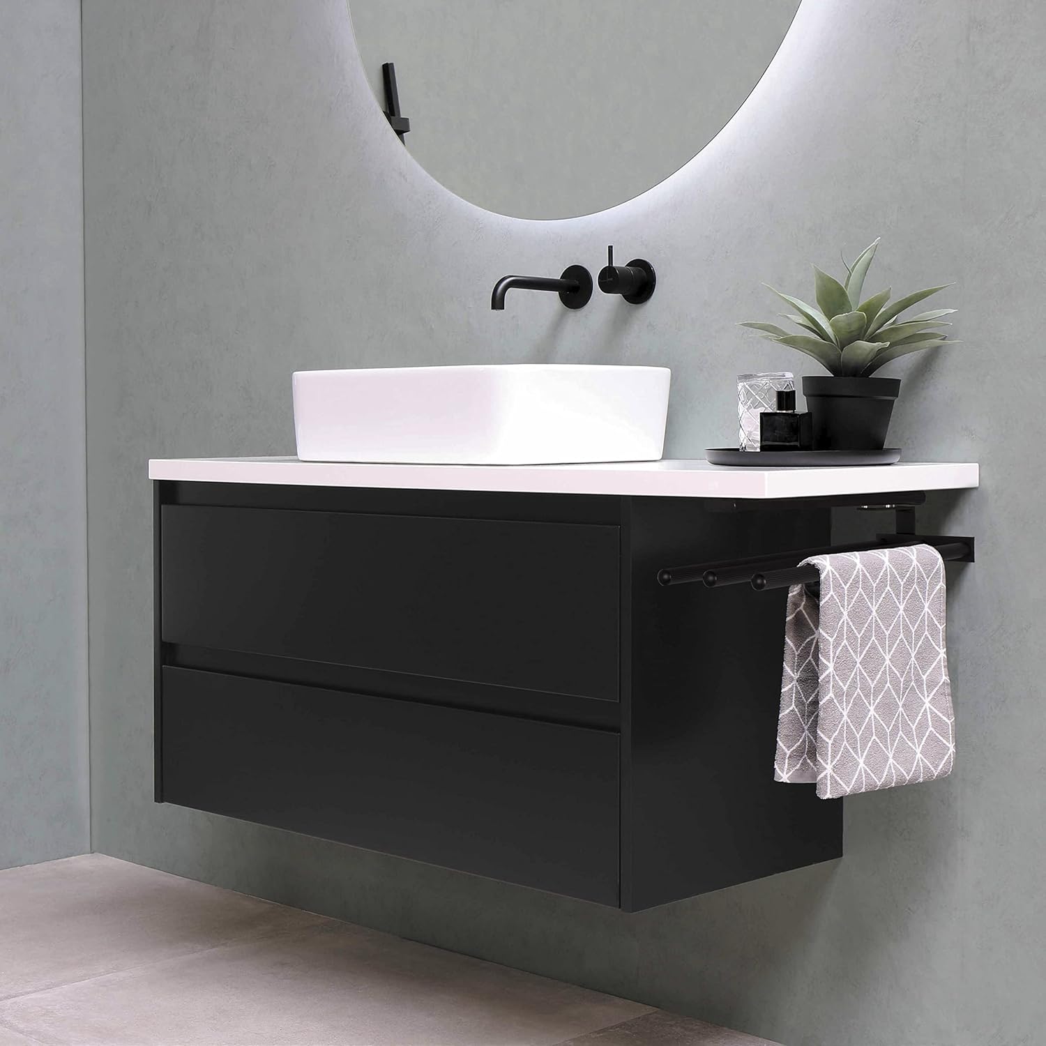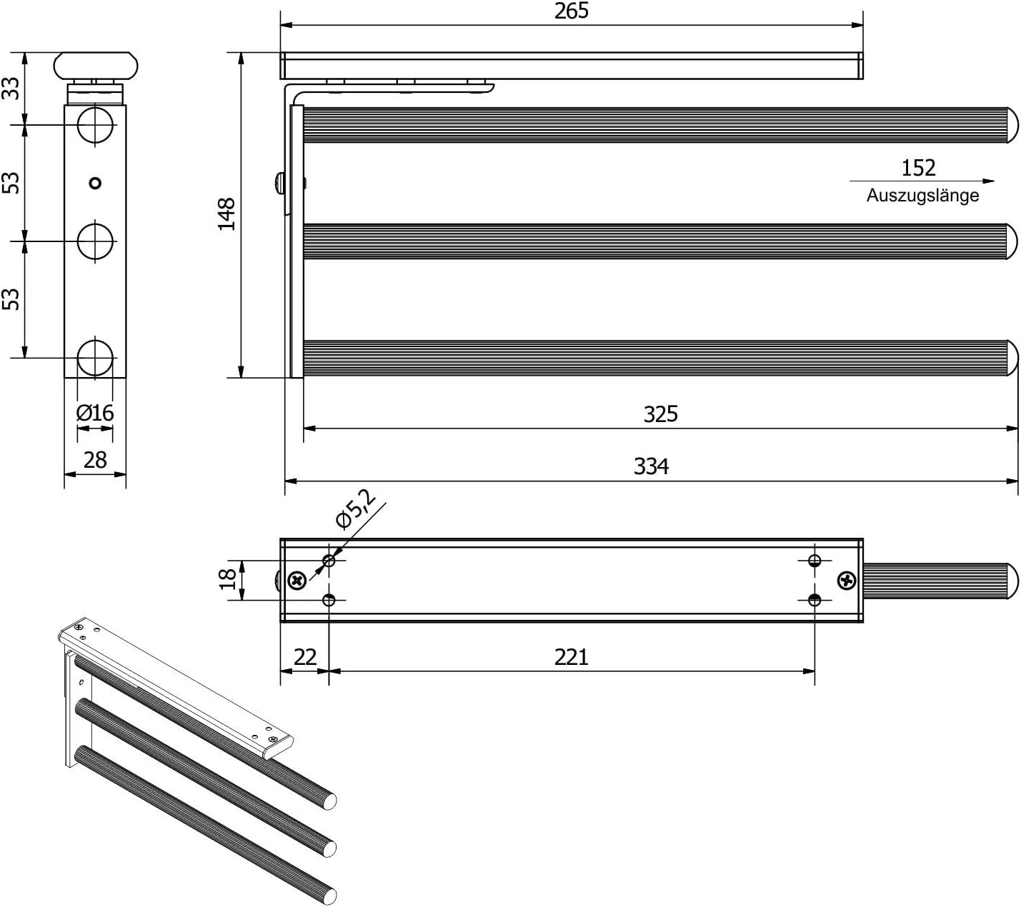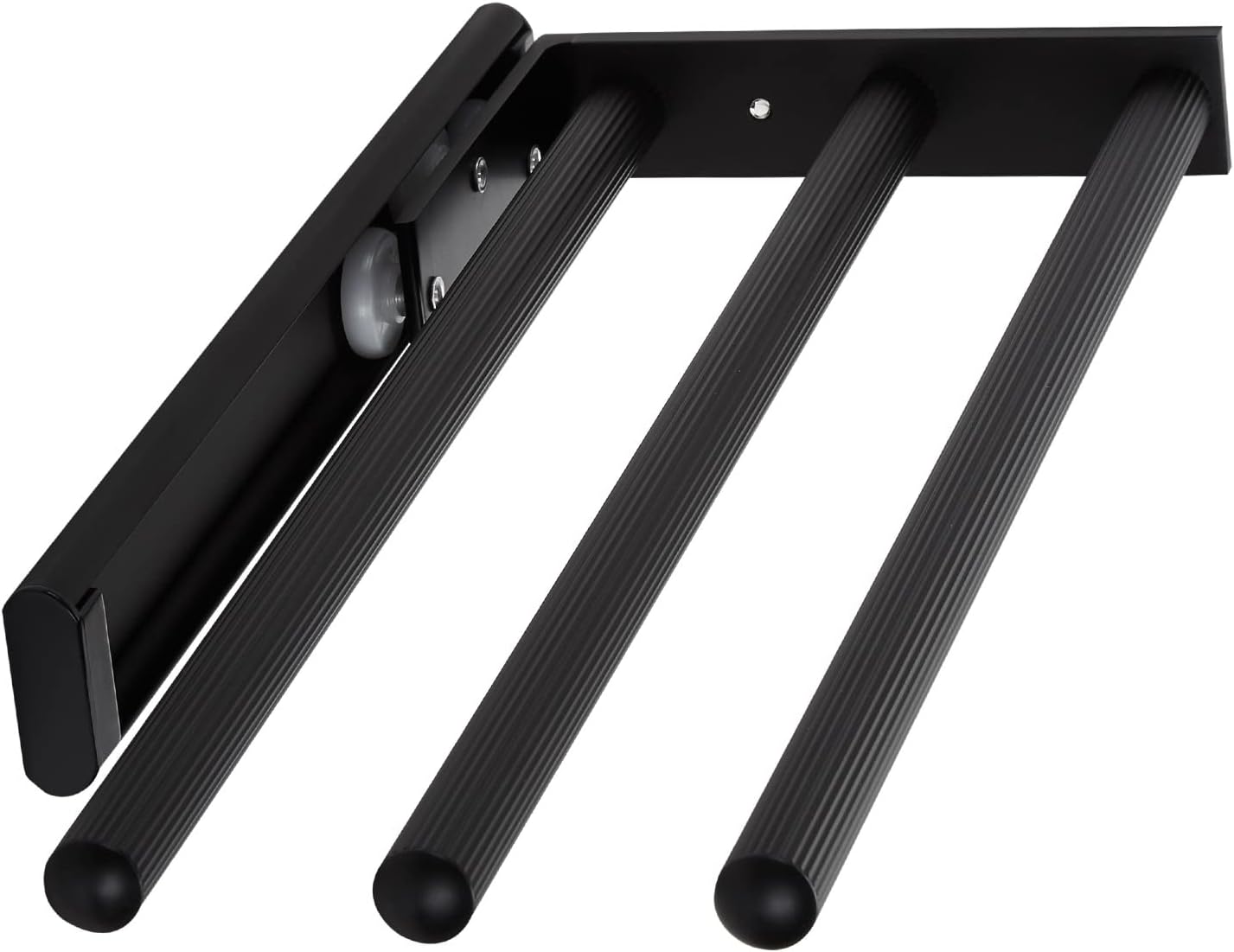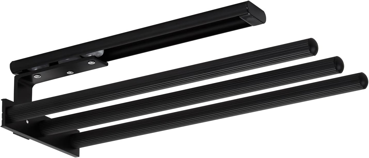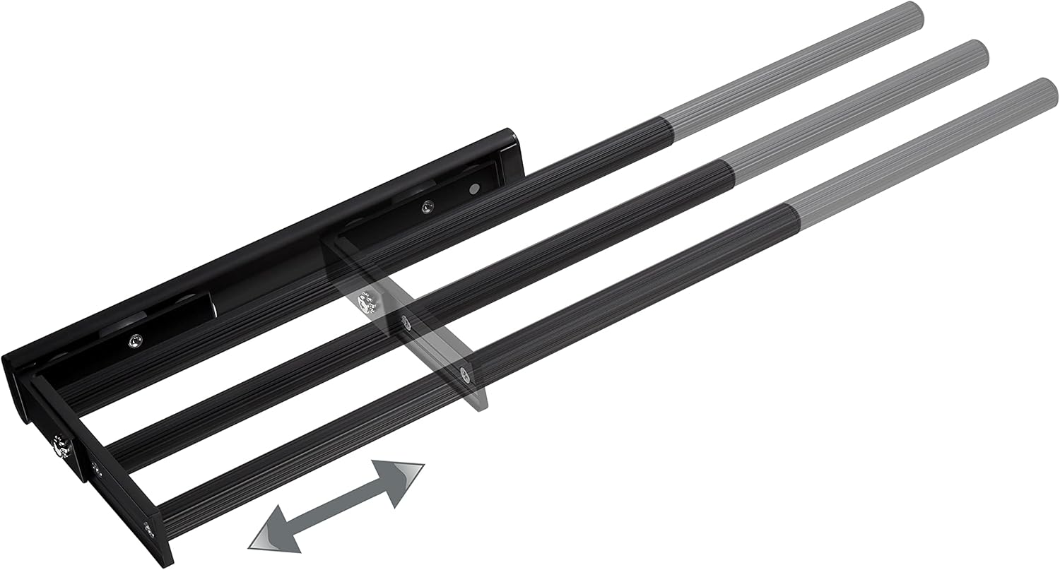 SOTECH TED Алуминиева поставка за кърпи с 3 рамена, черна, матова (325-487 мм, разтегателна, въртяща се) Телескопична поставка за кърпи, подходяща за по-големи кърпи