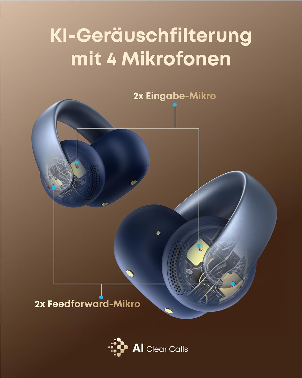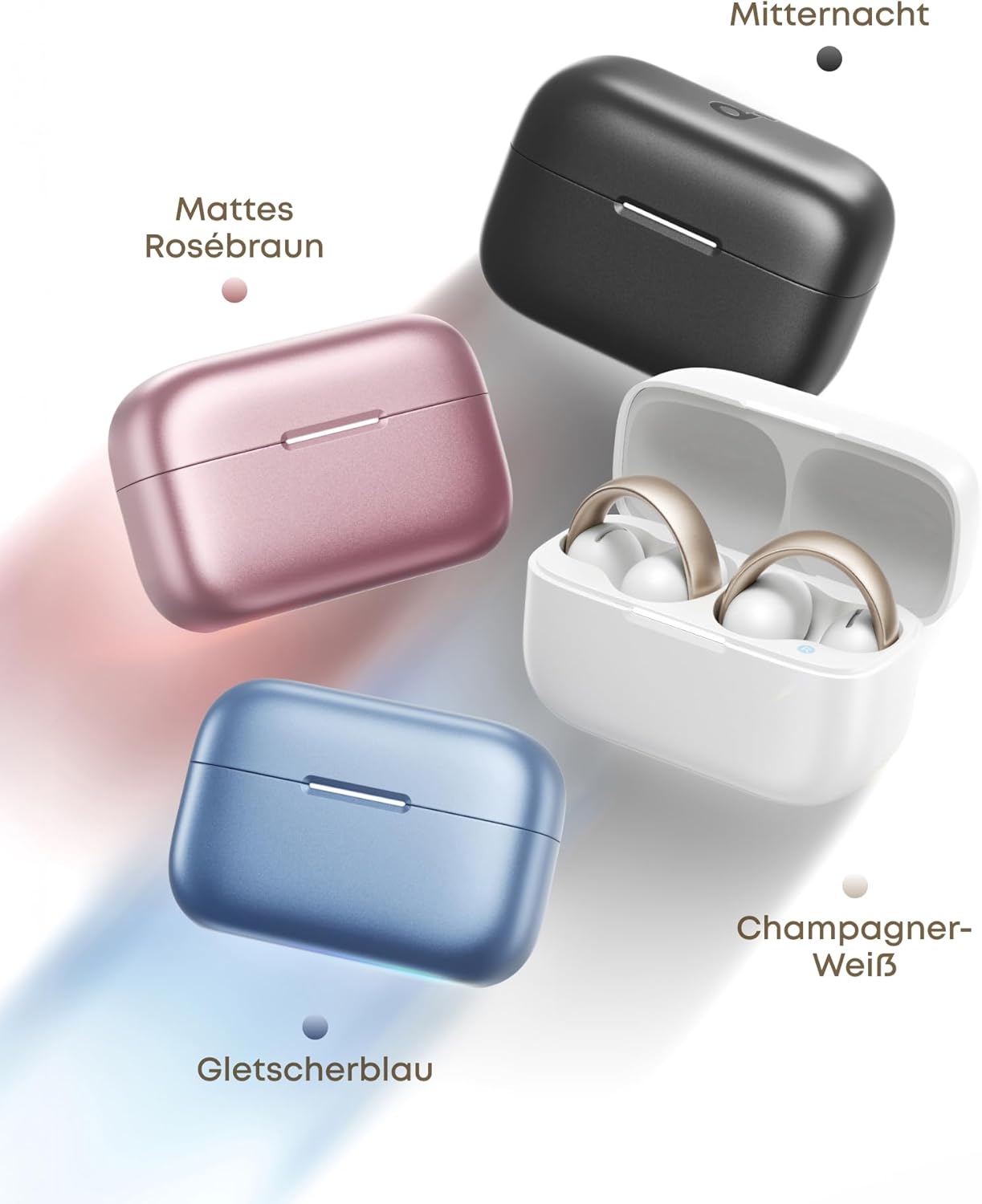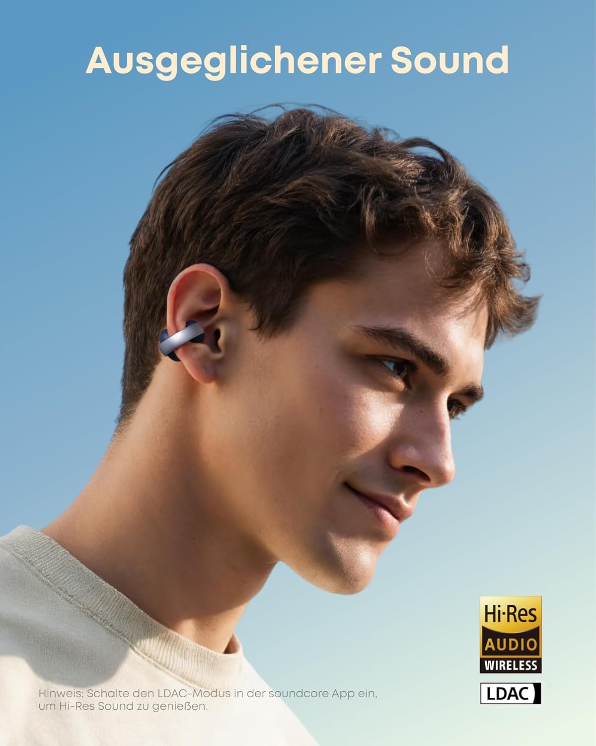 soundcore AeroClip от Anker, Слушалки с отворени уши, Bluetooth слушалки, Отворени слушалки, Комфорт през целия ден, 4 микрофона с изкуствен интелект, Сигурно задържане, 12 мм драйвер, Hi-Res, Дизайн с отворен пръстен
