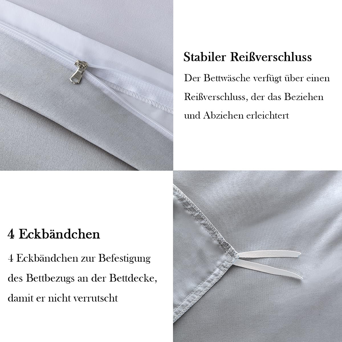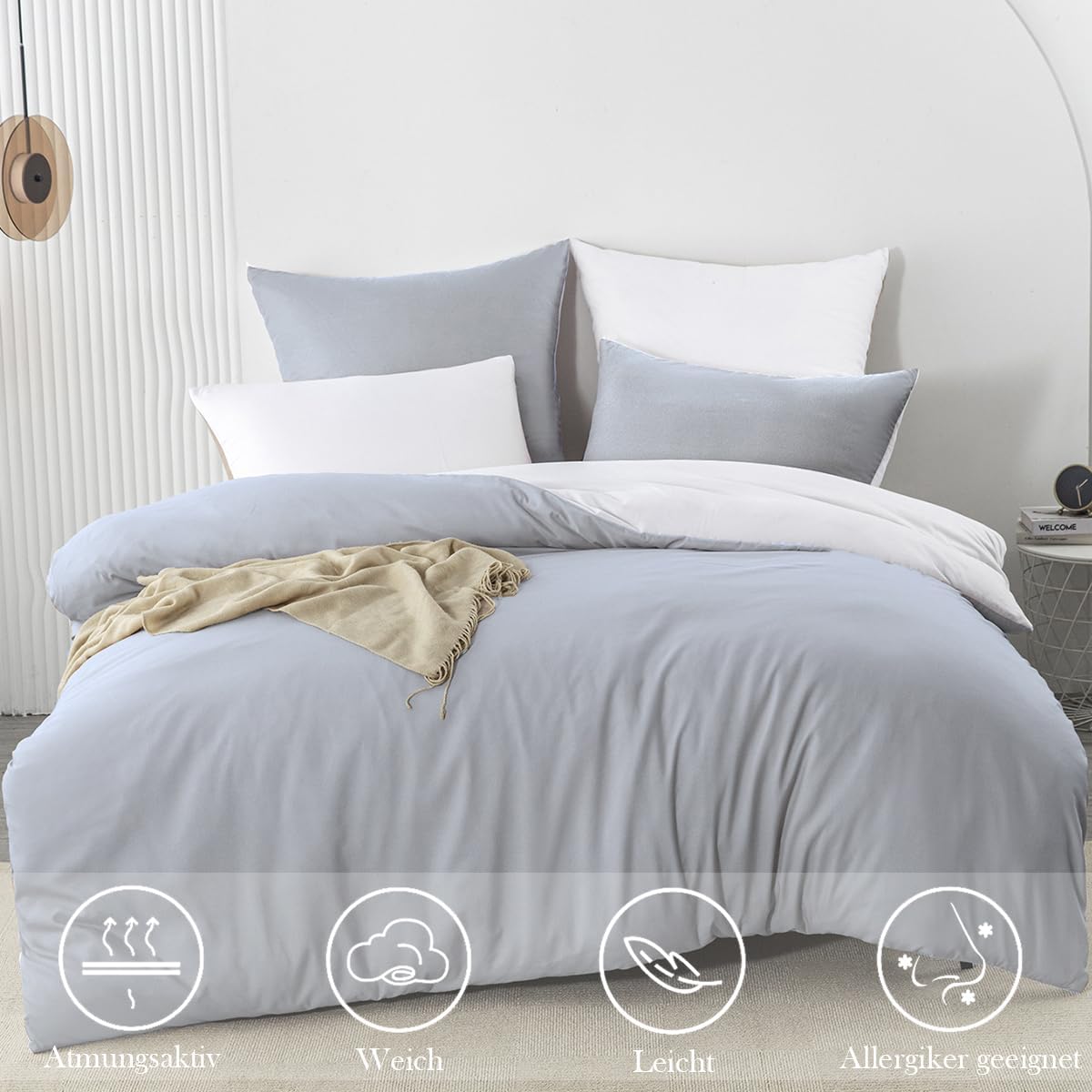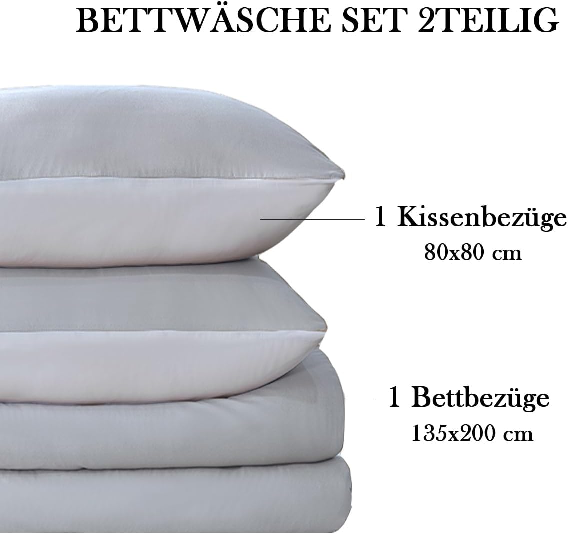 Спално бельо 135 x 200 см, 2 комплекта спално бельо в сиво/бяло, микрофибър, двулицево, 135 x 200 см, меко и не се глади, 1 калъф за завивка + 1 калъфка за възглавница 80 x 80 см с цип