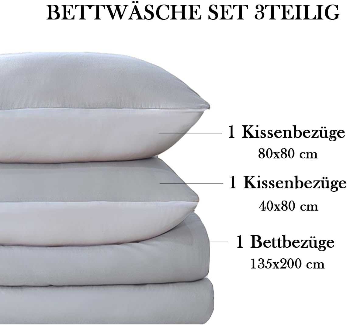 • 2 калъфа за завивка + 2 калъфки за възглавници: включва 1 калъф за завивка с размери 135 x 200 см с цип, 2 калъфки за възглавници с размери 80 x 80 см с цип; завивката и възглавницата не са включени.