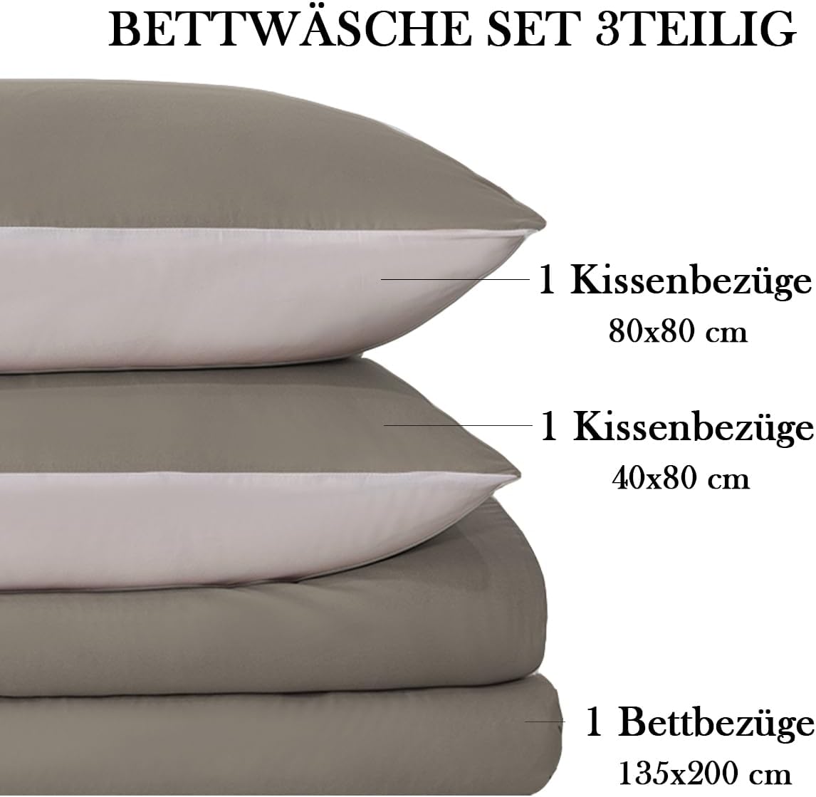 Спално бельо 135 x 200 см 3-частов комплект спално бельо в бежово/бежово Микрофибърно двулицево спално бельо 135 x 200 см, меко и нежелаещо се 1 калъф за завивка + 1 калъфка за възглавница 80 x 80 см + 1 калъфка за възглавница 40 x 80 см