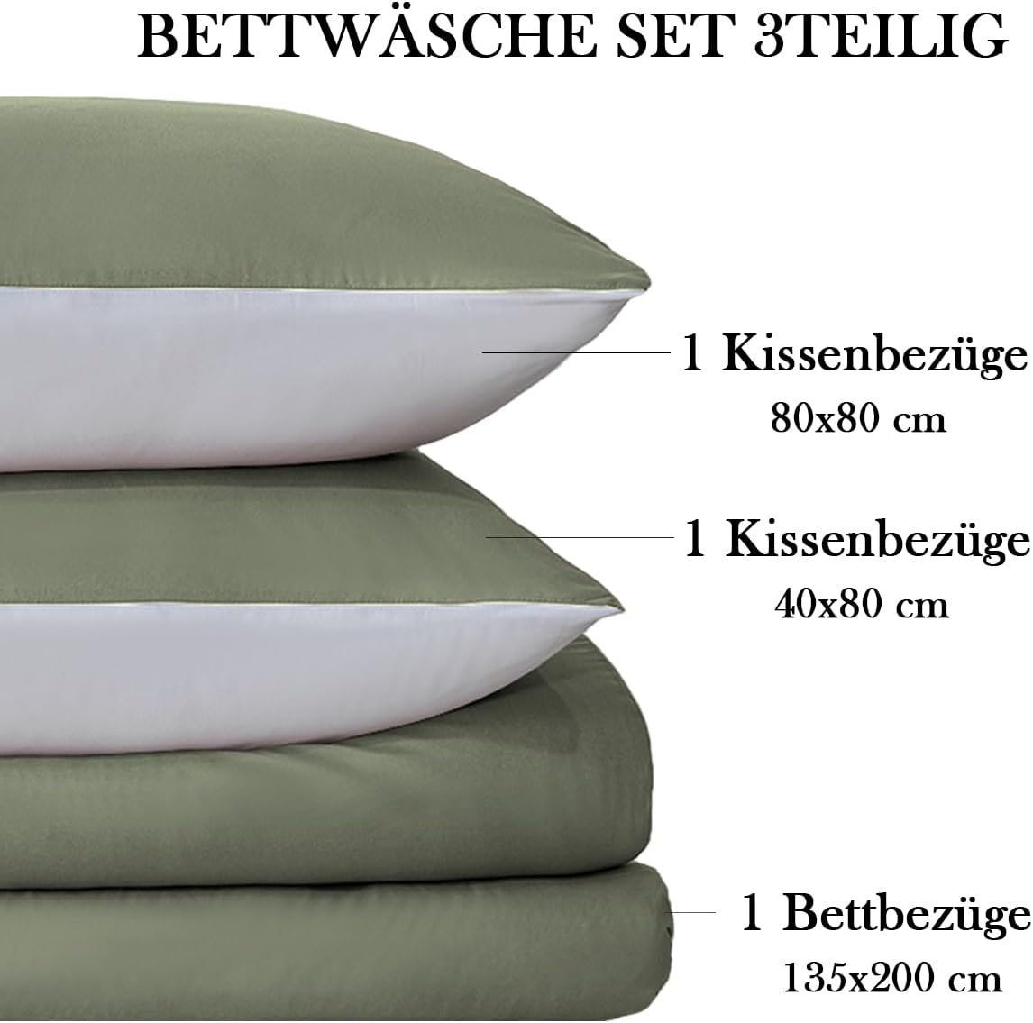 Спално бельо 135 x 200 см, 3 комплекта спално бельо в цвят градински чай / бяло, микрофибър, двулицево спално бельо 135 x 200 см, меко и нежелаещо се, 1 калъф за завивка + 1 калъфка за възглавница 80 x 80 см + 1 калъфка за възглавница 40 x 80