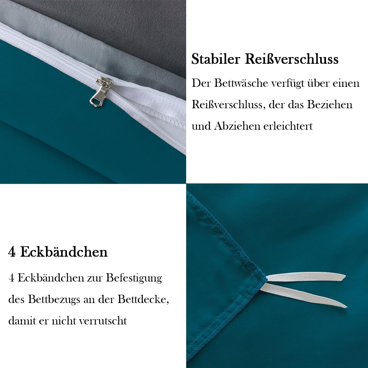 Спално бельо 140 x 200 см, 2 части, петрол/антрацит, микрофибър, двулицево спално бельо 140 x 200 см, меко и нежелаещо се, 1 калъф за завивка + 1 калъфка за възглавница 80 x 80 см с цип