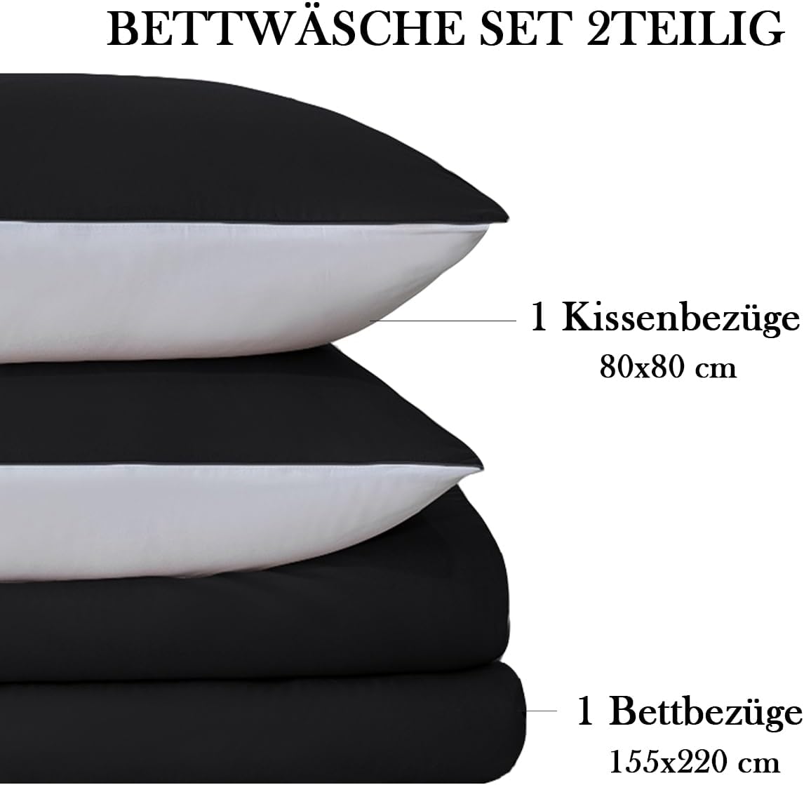 Спално бельо 155 x 220 см, 2 комплекта спално бельо, черно/бяло, микрофибър, двулицево спално бельо 155 x 220 см, меко и не се глади, 1 калъф за завивка + 1 калъфка за възглавница 80 x 80 см с цип
