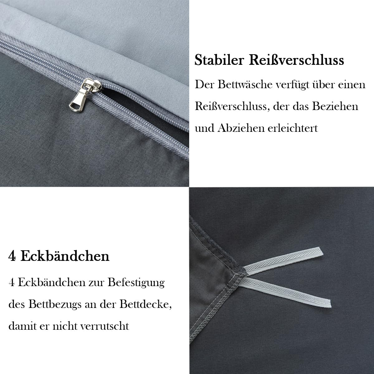 Спално бельо 155 x 220 см 2 комплекта спално бельо от микрофибър, антрацит/сиво, двулицево, 155 x 220 см, меко и не се глади, 1 калъф за завивка + 1 калъфка за възглавница 80 x 80 см с цип