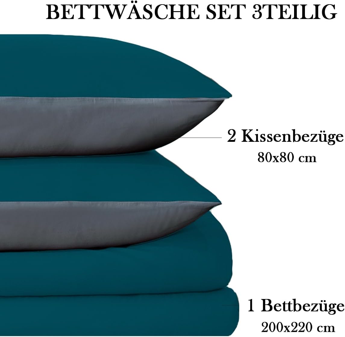 Спално бельо 200 x 220 см, 3 части, петрол/антрацит, микрофибър, двулицево спално бельо 200 x 220 см, меко и нежелаещо се, 1 калъф за завивка + 2 калъфки за възглавници 80 x 80 см с цип