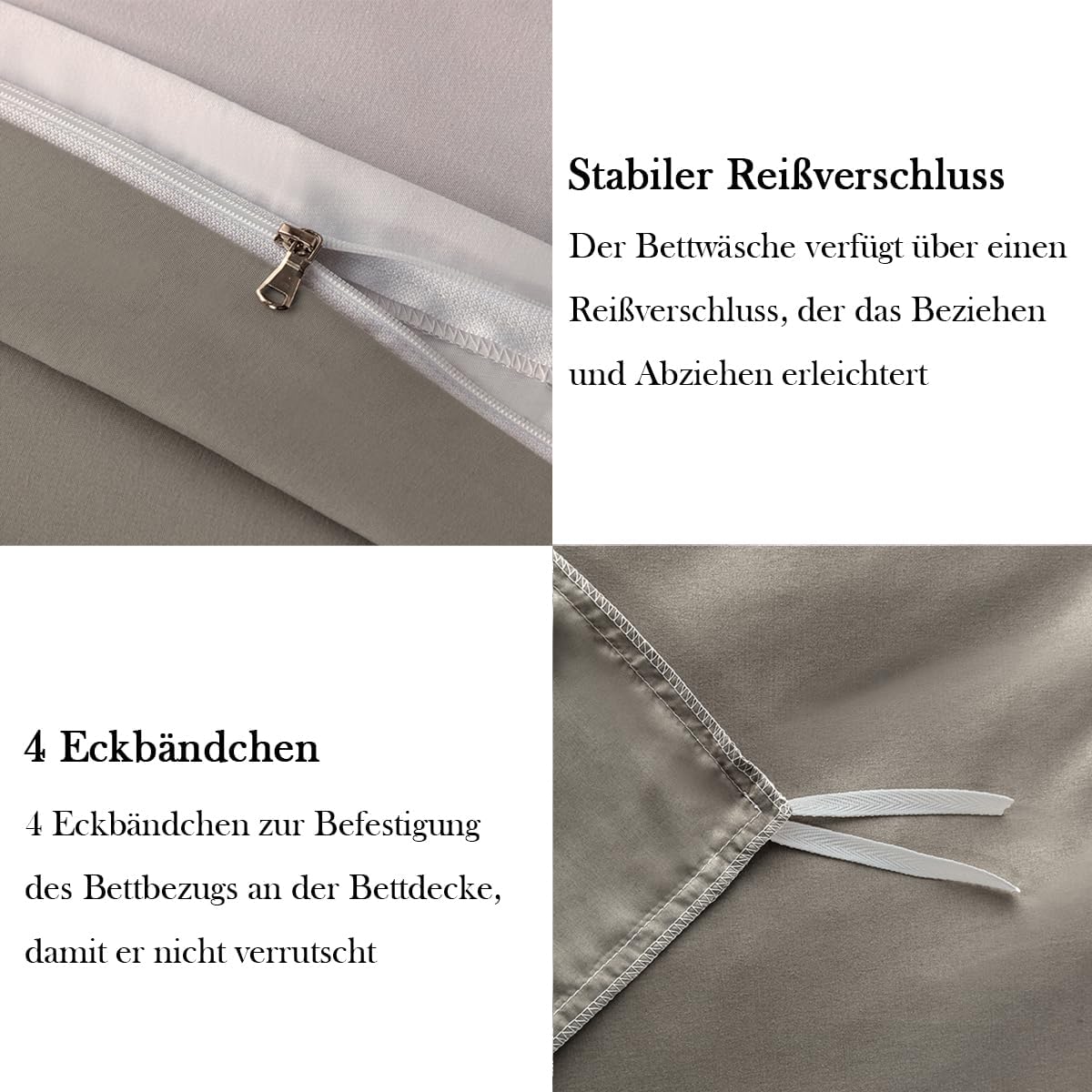 Спално бельо 200 x 220 см, 3 комплекта спално бельо в бежово/бежово, двулицево спално бельо от микрофибър 200 x 220 см, меко и не се глади, 1 калъф за завивка + 2 калъфки за възглавници 80 x 80 см с цип