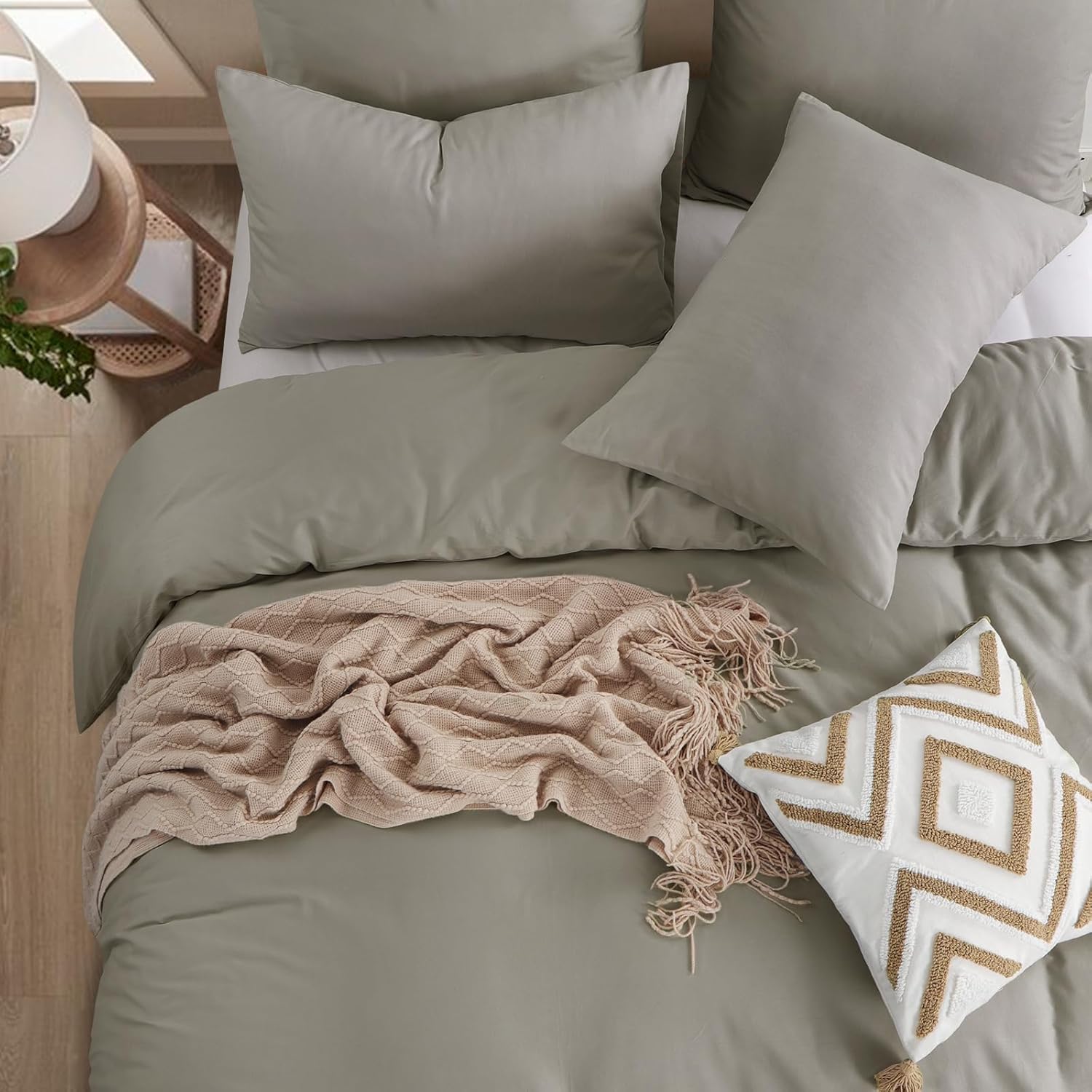 Спално бельо Aisbo 135 x 200 см Памучен комплект спално бельо от 4 части в бежово, комплект от 2 калъфки за завивка в бежово 80 x 80 см, Комплект памучно спално бельо, Oeko-Tex спално бельо в бежово с цип