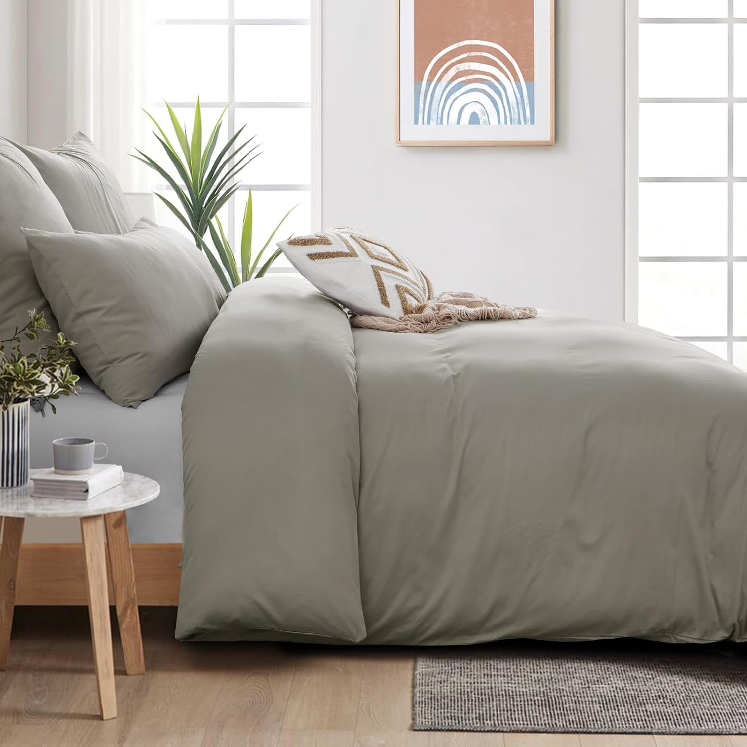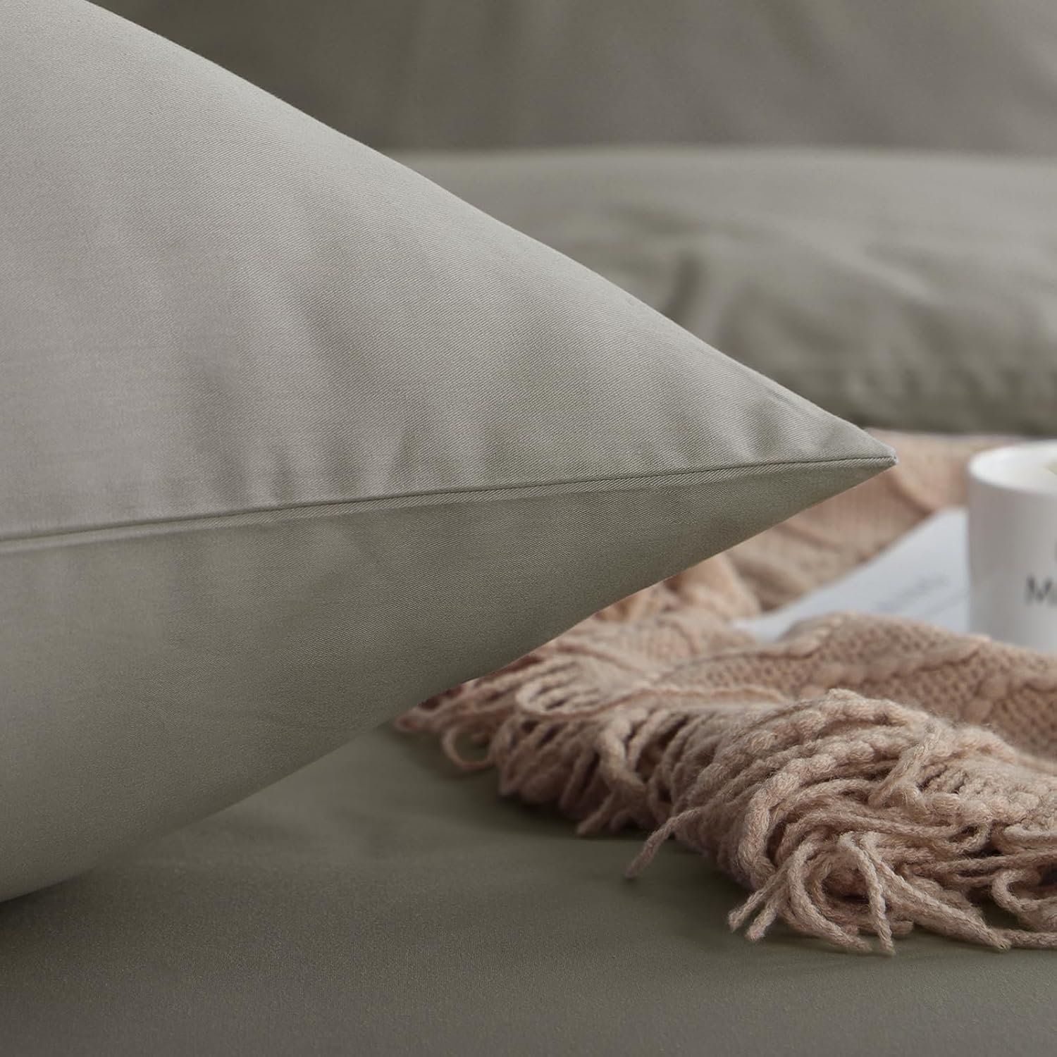 • За да сте сигурни, че сивото спално бельо винаги ще запази формата и цвета си, препоръчваме нежна грижа: перете на деликатен цикъл до 40°C, сушете на ниска температура, гладете на средна температура, ако е необходимо.