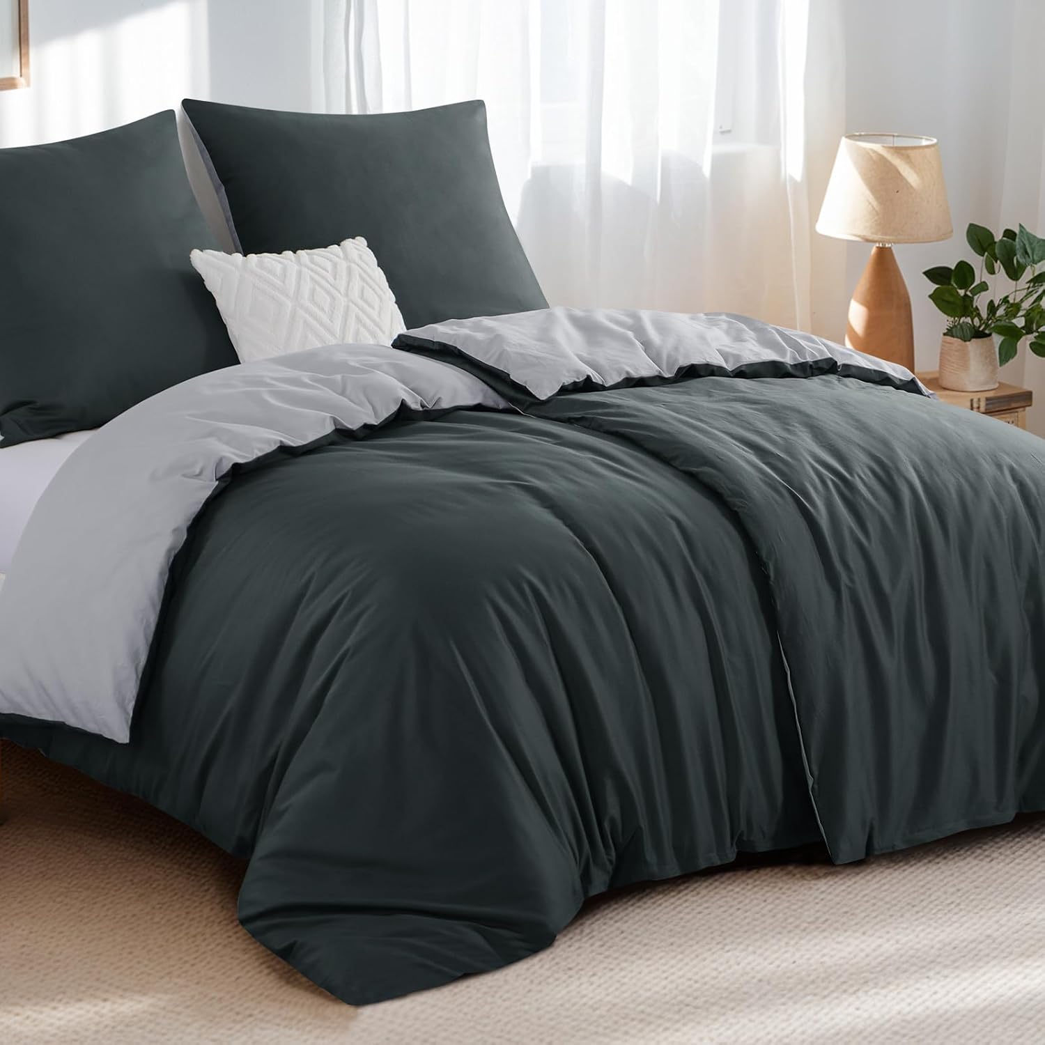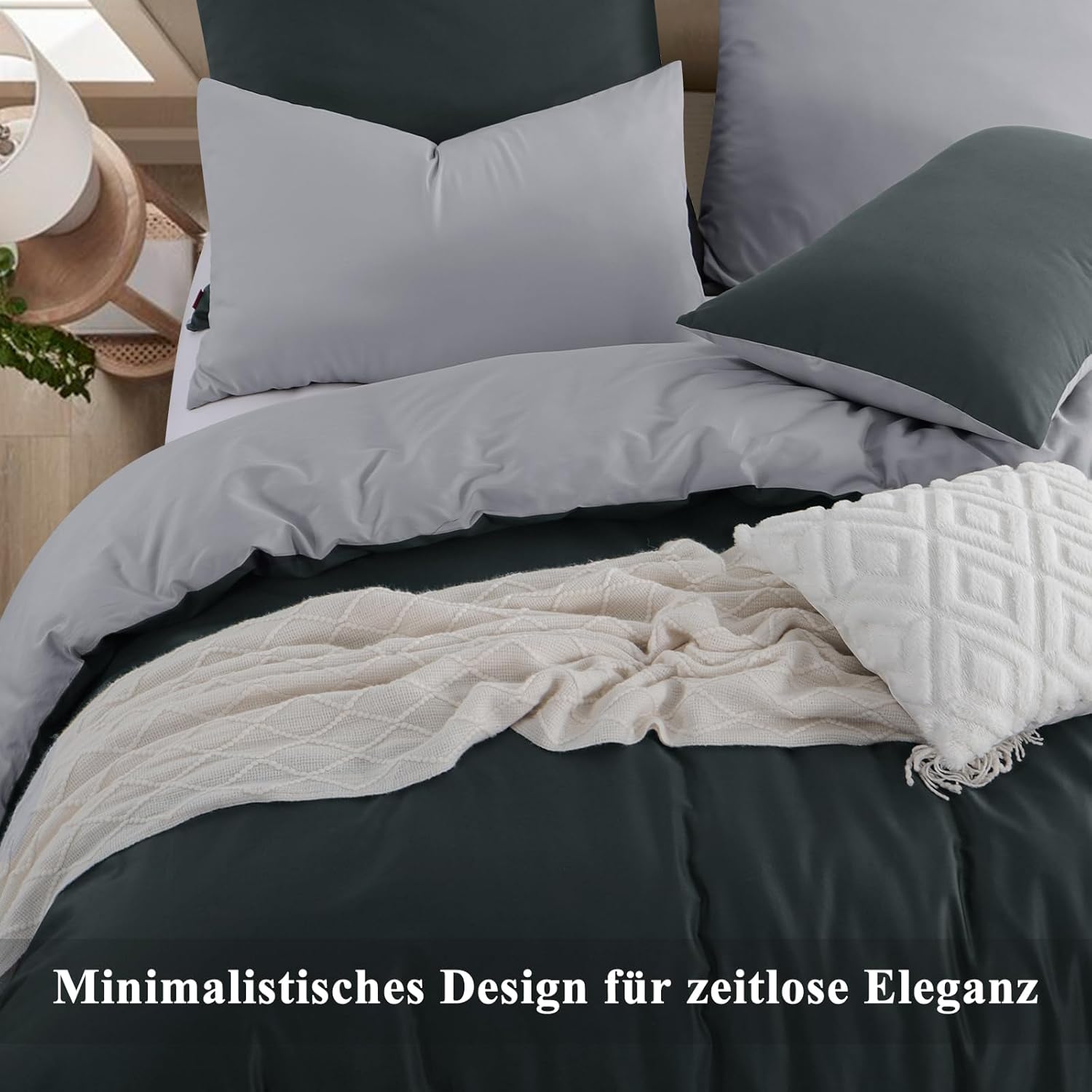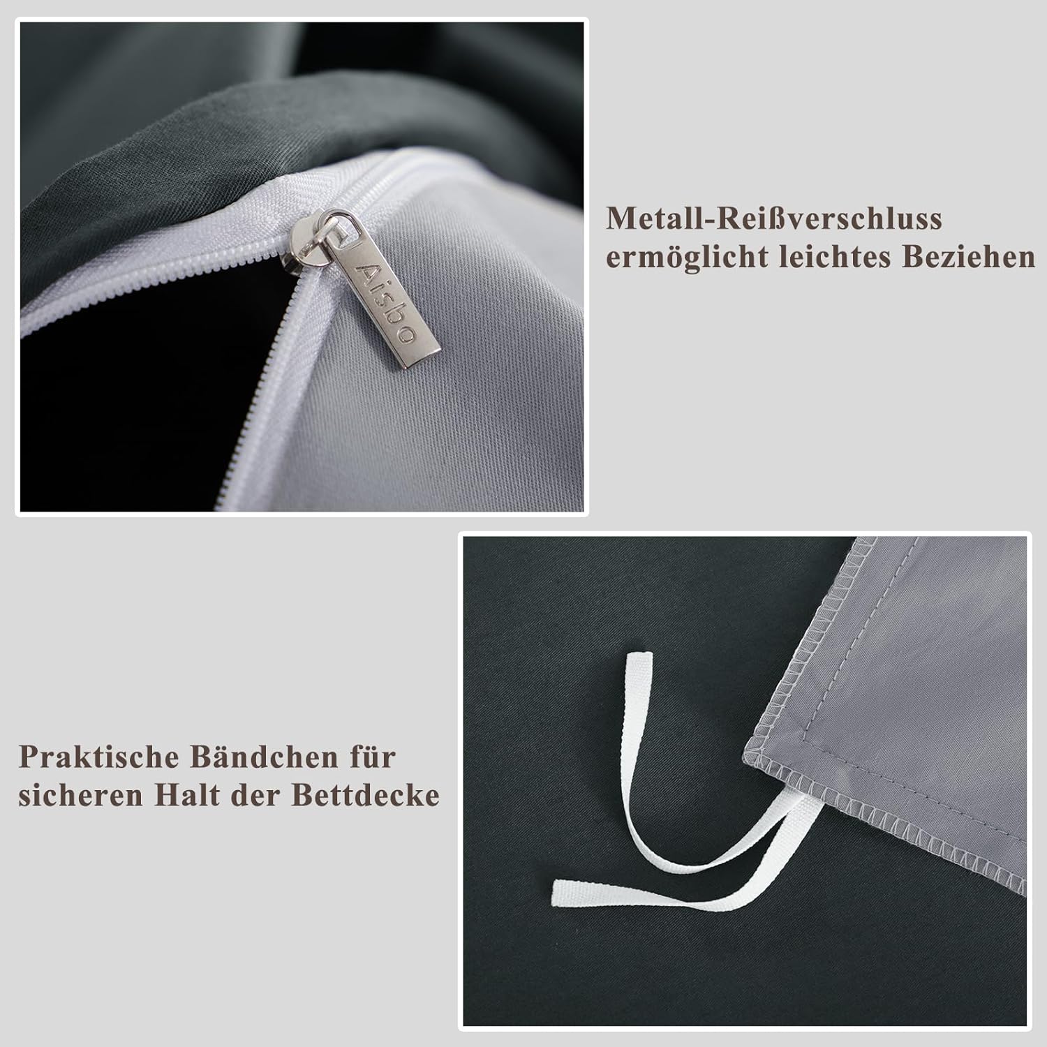Спално бельо Aisbo 135 x 200 см Памучно спално бельо от 4 части Антрацитно сиво Комплект спално бельо с две лица от 2 с 2 калъфки за възглавници 80 x 80 см, Oeko-Tex Двуцветно памучно спално бельо с цип
