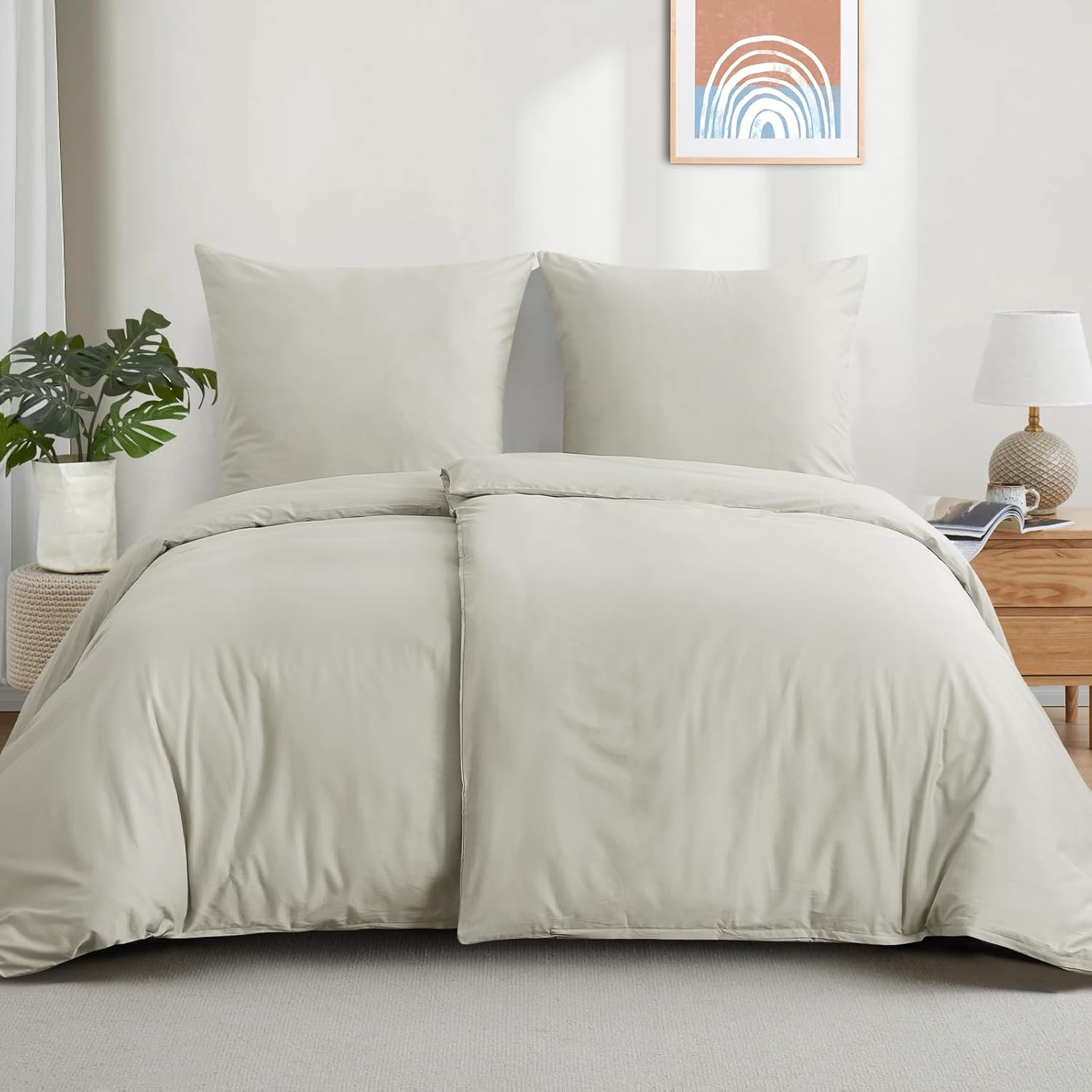 Спално бельо Aisbo 135 x 200 см Памучно спално бельо от 4 части Бежово Комплект калъфки за завивки от 2 броя с 2 калъфки за възглавници 80 x 80 см, Комплект памучно спално бельо, Спално бельо Oeko-Tex Бежово с цип
