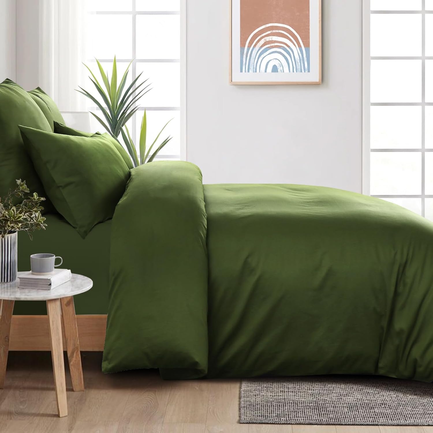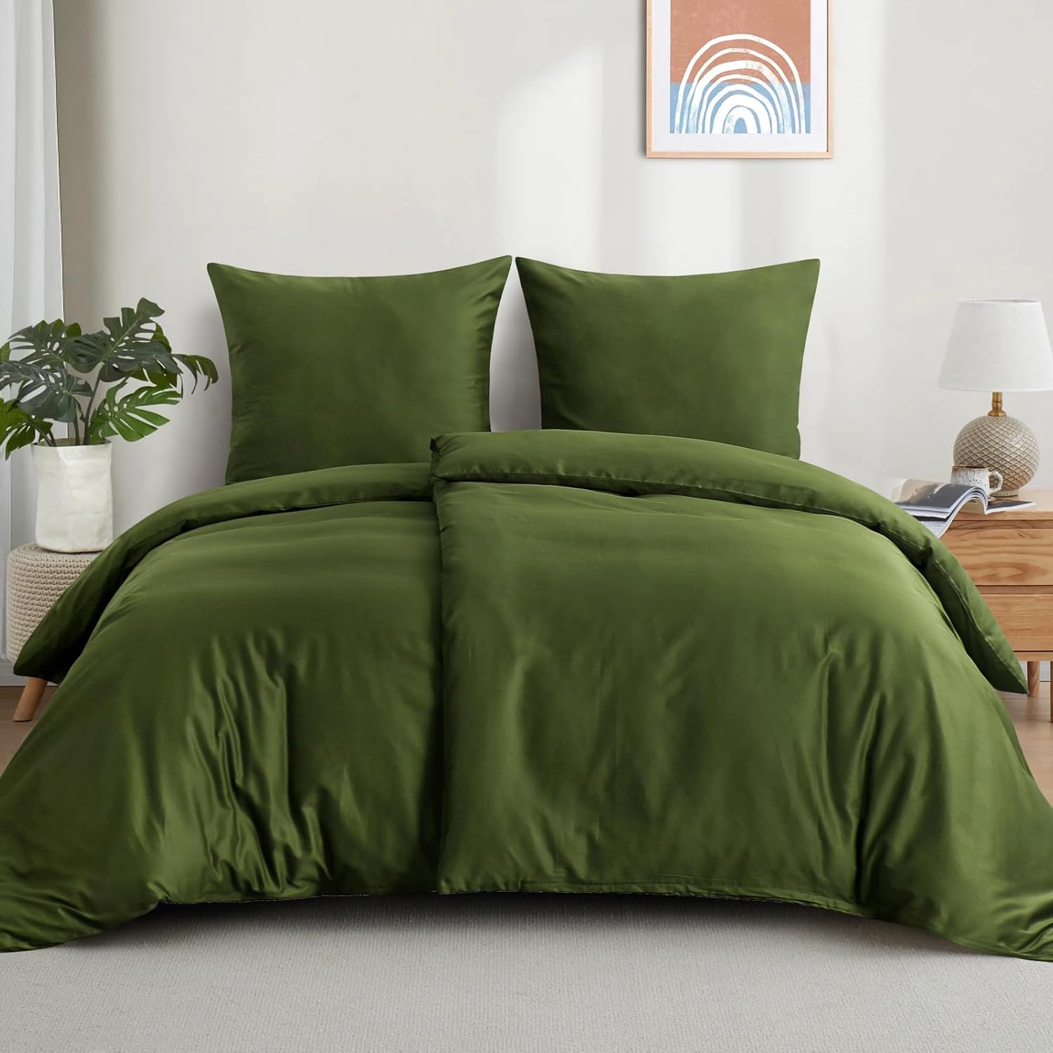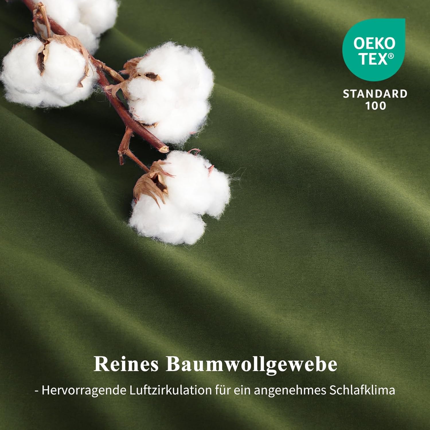 Спално бельо Aisbo 135 x 200 см Памучно спално бельо от 4 части Маслинено зелено Комплект калъфки за завивки от 2 с 2 калъфки за възглавници 80 x 80 см, Комплект памучно спално бельо, Oeko-Tex спално бельо зелено с цип