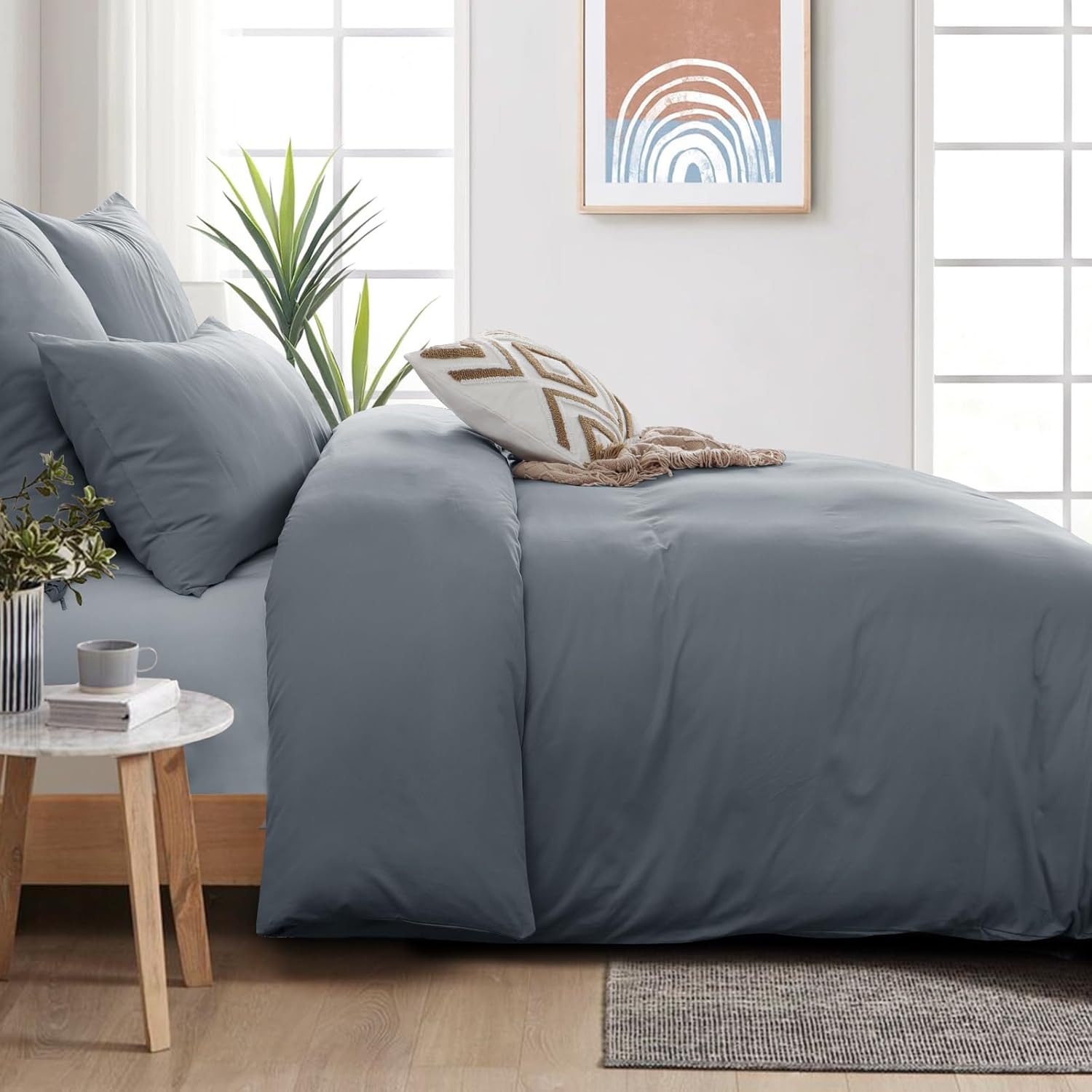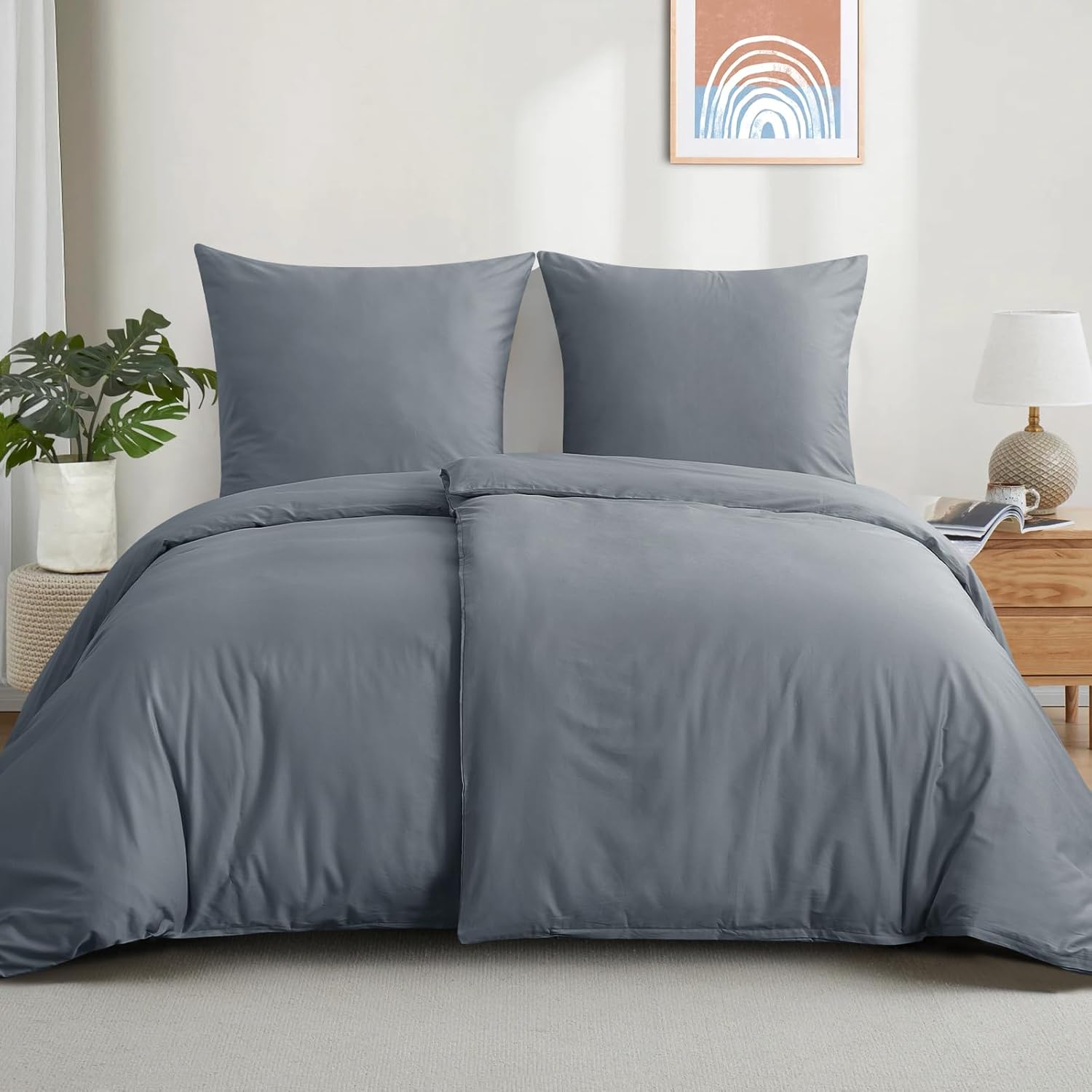 Спално бельо Aisbo 135 x 200 см Памучно спално бельо от 4 части Сив Комплект калъфи за завивка от 2 с 2 калъфки за възглавници 80 x 80 см, Комплект памучно спално бельо, Oeko-Tex спално бельо сиво с цип