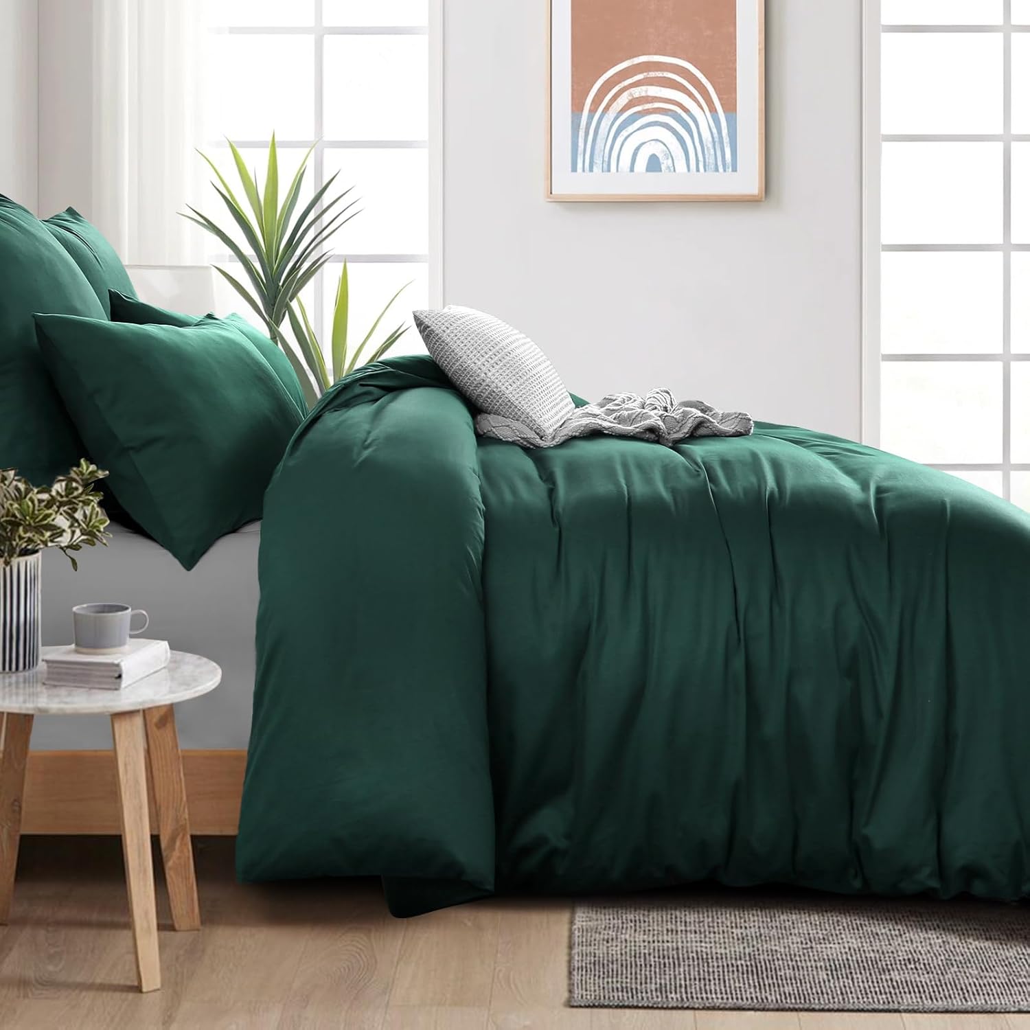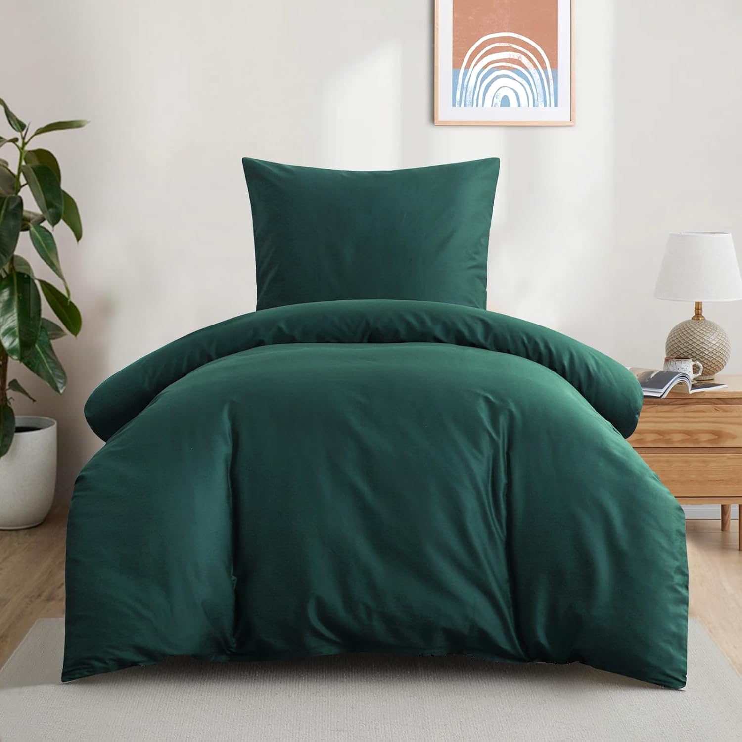 Спално бельо Aisbo 155 x 220 см, памучно тъмнозелено - Комплекти спално бельо Плик за завивка 155 x 220 см с калъфка за възглавница 80 x 80 см, Комплект спално бельо от памук, Oeko-Tex спално бельо зелено с цип