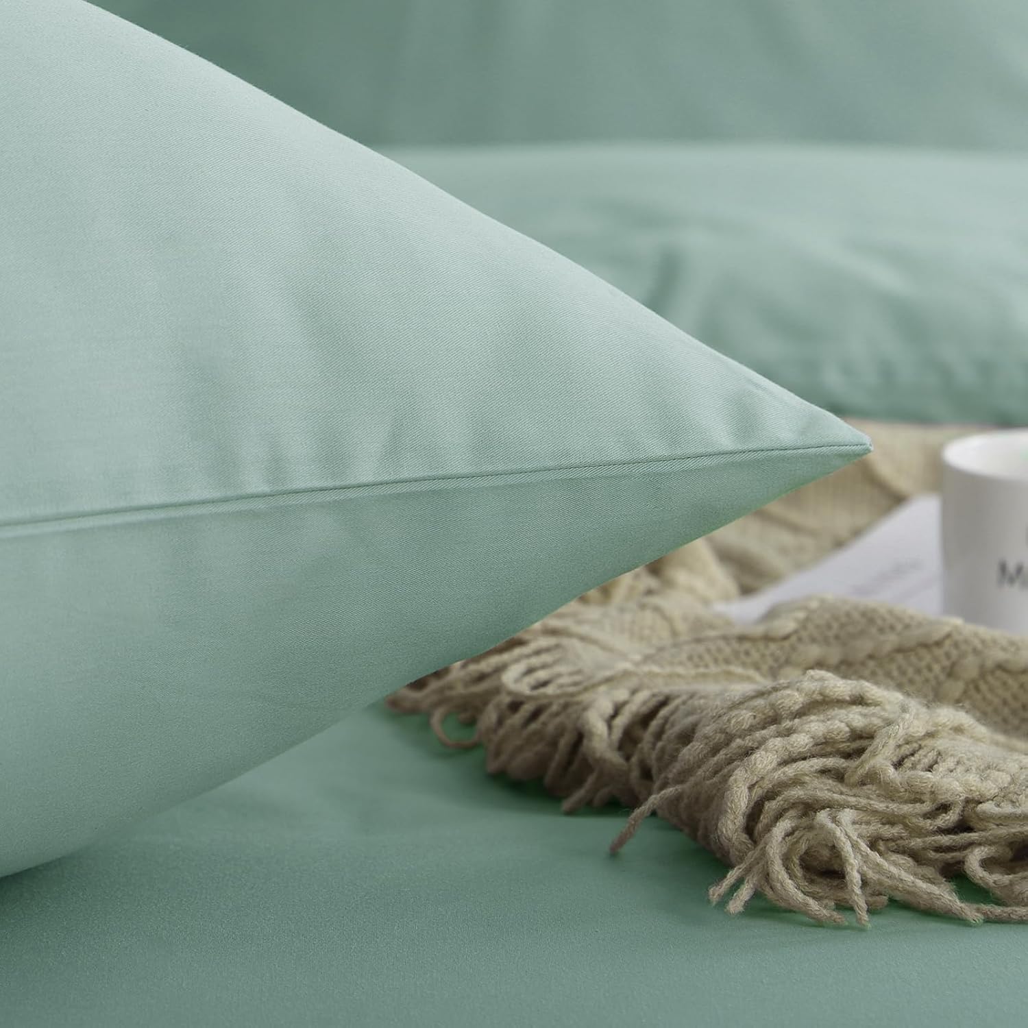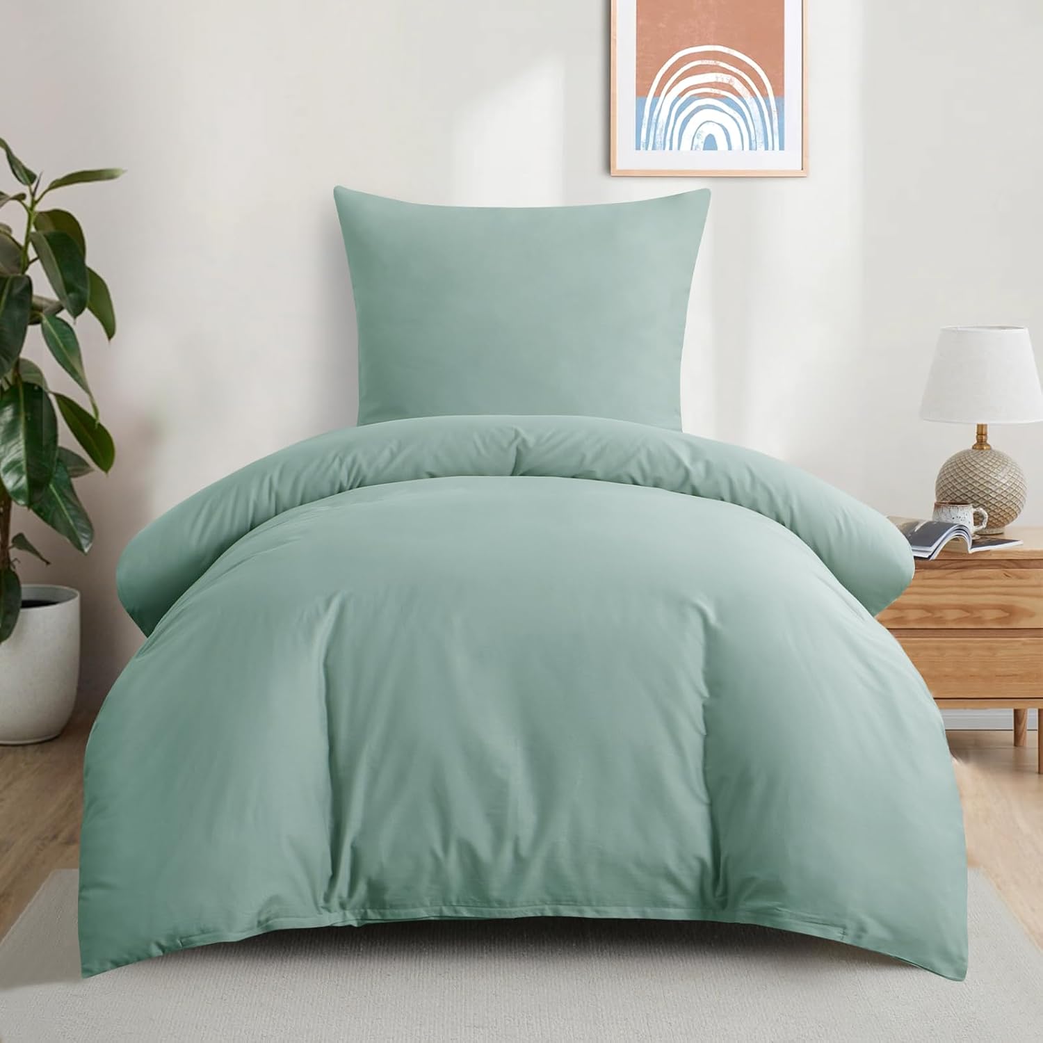 Спално бельо Aisbo 155 x 220 см, памучно зелено - Комплекти спално бельо Плик за завивка 155 x 220 см с калъфка за възглавница 80 x 80 см, Комплект спално бельо от памук, Oeko-Tex спално бельо, зелено с цип