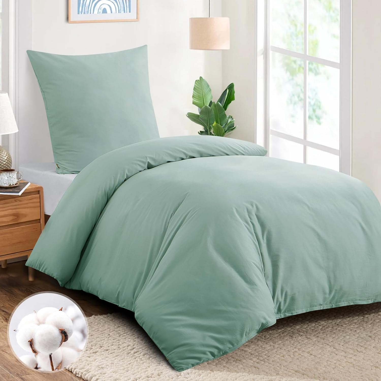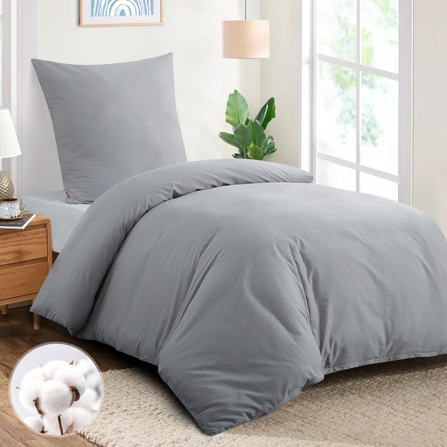 • Насладете се на спокоен нощен сън в нашето памучно спално бельо с размери 135 x 200 см (съдържание на кутията: 2 калъфа за завивки 135 x 200 см и 2 калъфки за възглавници 80 x 80 см). Естествената памучна материя прави комплекта спално бельо особено дишащ и абсорбиращ и по този начин предлага приятна среда за сън през цялата година.